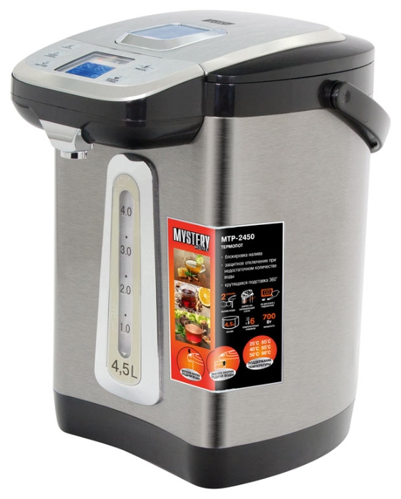 Фирма-производитель оставляет за собой право на внесение изменений в конструкцию, дизайн и комплектацию товара: Термопот Mystery MTP-2450. Пожалуйста, сверяйте информацию о товаре с информацией на