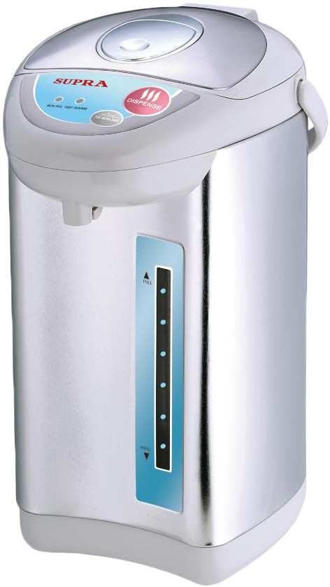 Пока еще редкие чайники оборудованы терморегулятором. Да и держат температуру воды они минут 30, не больше. Другое дело термопот – такой, как SUPRA TPS-3002. С ним горячая вода (80-85 °С) всегда будет в доступе. Это особенно удобно, когда в семье есть маленькие дети. По мощности такие приборы, конечно, уступают чайникам, но наш герой – приятное исключение. Полный объем – 3.8 литра воды – он вскипятит за 20 минут. Есть режим повторного кипячения: здесь вам придется ждать минуты три, не больше. Внутренняя камера прибора сделана из нержавеющей стали, так что на качество воды вы жаловаться не будете. Тем более что устройство оборудовано фильтром для задержания накипи.