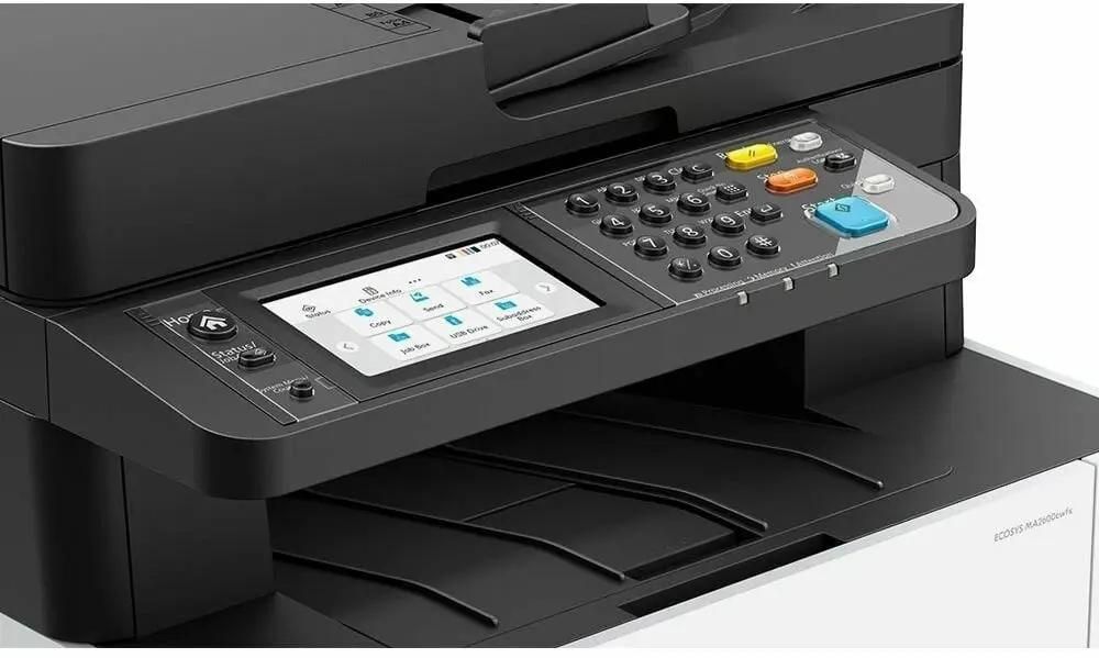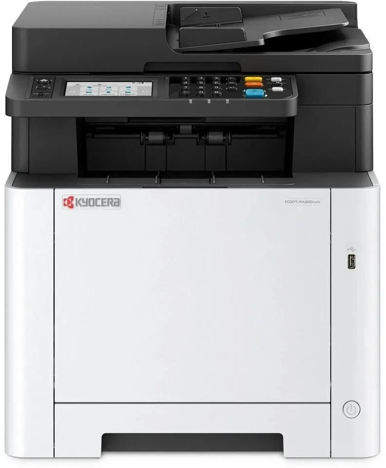 Описание МФУ Kyocera Ecosys MA2600cwfx [110C0D3NL0/110C0D3NL1] Цветное МФУ формата A4 Kyocera ECOSYS MA2600cwfx - скоростное, экономичное, надежное и очень легкое в освоении многофункциональное устройство оснащенное самыми современными функциями. Цветной копировальный аппарат с большим количеством цифровых функций, автоподатчик реверсивного типа на 50 листов, цветной принтер с модулем двусторонней печати, возможностью сетевого подключения через разъем 8P8C (стандарта RJ-45), беспроводная печать по Wi-Fi, сетевой сканер с функцией полноцветного сканирования, модуль факсимильной связи и цветная 4,3 дюймовая (10,9 см) сенсорная панель управления, входящие в стандартный комплект поставки МФУ, эффективно оптимизируют все рабочие процессы организации связанные с документооборотом и существенно снизят эксплуатационные издержки. Копирование и печать по сети со скоростью 26 страниц в минуту в монохромном и полноцветном режимах, реверсивный автоподатчик оригиналов, большой объем печати и копирования в месяц, значительно ускорят выполнение необходимых объемов работы. Улучшенные функциональные возможности обработки деловой документации, исключительное качество отпечатка, самая низкая себестоимость копии в своем классе, большой ресурс всех узлов и деталей, позволят вам сосредоточиться на действительно важных делах, предоставив ECOSYS MA2600cwfx выполнение всех задач компании.