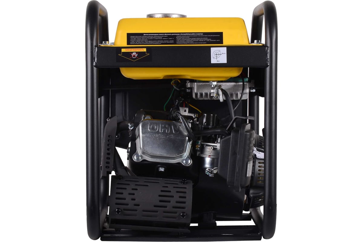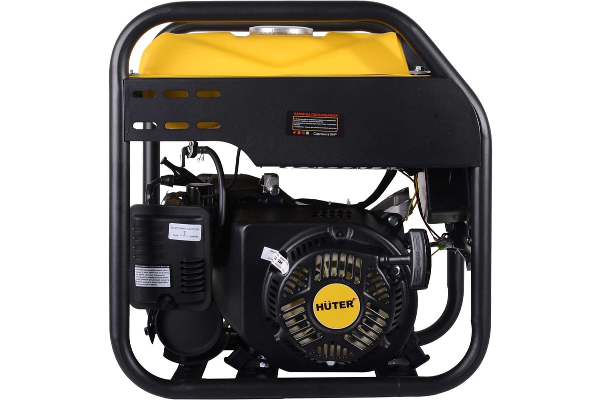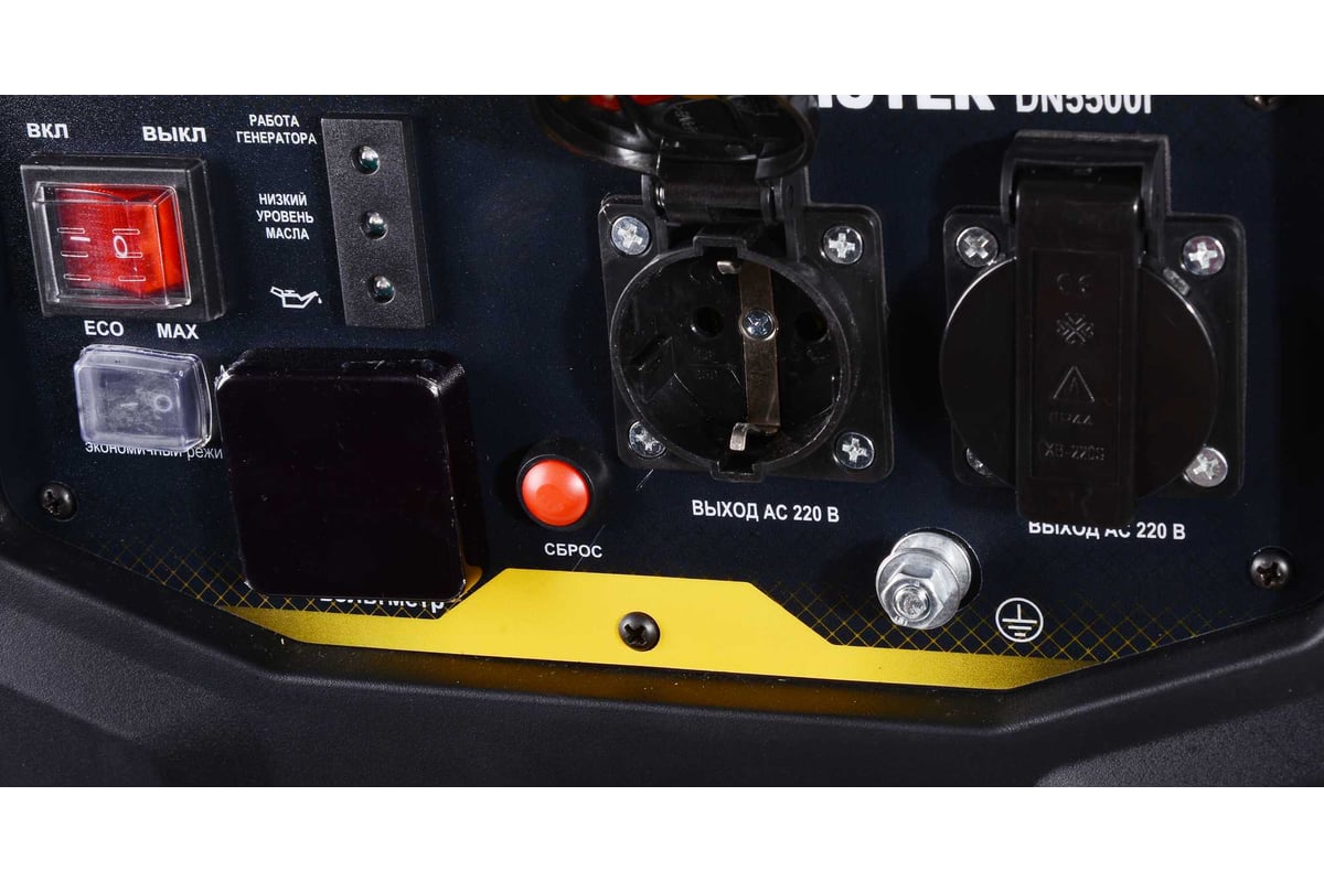 Описание Электрогенератор HUTER DN5500i [64/10/29] Инверторный генератор DN5500i Huter — портативный источник автономного питания, создаваемый для энергообеспечения различного бытового и строительного оборудования. Генератор отлично подойдёт для организации временного электроснабжения на выезде, на даче, строительной площадке или в путешествии. Главной характеристикой инверторных моделей является форма выходного сигнала, близкая к идеальному "чистому синусу", что позволяет подключить любое чувствительное электронное оборудование, такое как компьютеры, медицинские аппараты и прочую технику, не опасаясь перебоев или искажений питания. Встроенный карбюраторный двигатель работает на стандартном бензине марки АИ-92. Генератор развивает максимальную мощность до 4700 Вт, обеспечивая энергией мощные потребители, такие как электроинструменты, холодильники или освещение. Постоянная мощность составляет 4400 Вт, что гарантирует длительный период эксплуатации без остановок и перерывов. Компактные размеры и малый вес делают устройство мобильным и удобным для перевозки, а прочная металлическая рама защищает важные узлы от внешних воздействий. Топливный бак емкостью 7 л позволяет обеспечить долгие часы непрерывной работы, а емкость масляной системы в 600 мл гарантирует надежность двигателя и долгое время без технического обслуживания. Использование простого и надежного ручного стартера позволяет включить устройство, не прибегая к аккумуляторам.