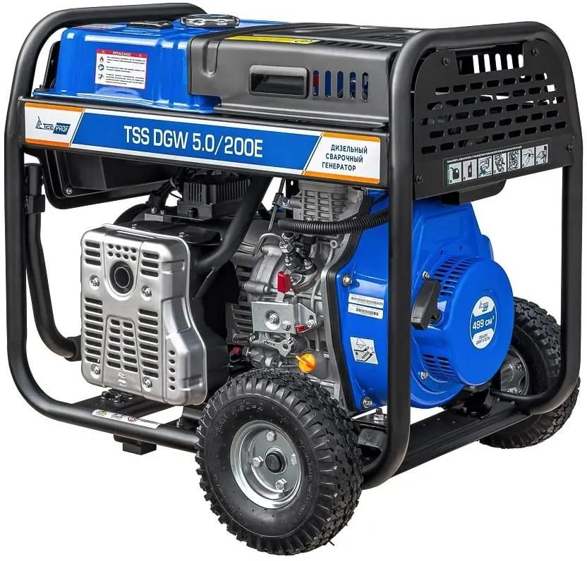 Описание Электрогенератор ТСС Prof DGW 5.0/200E [45621] Это профессиональная модель, разработана специально для проведения сварочных работ в тяжелых условиях эксплуатации. Номинальный сварочный ток составляет 200А при продолжительности включения 100%! Аппарат имеет расширенные сварочные настройки. Номинальный сварочный ток 200 Ампер. Кроме этого, генератор можно использовать как автономный источник электроснабжения. Можно освещать место сварки, подключать электроинструмент - дрель, шлифмашинку, болгарку и т.п. Мощность генератора 5 кВт.