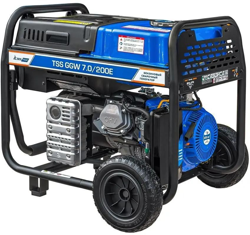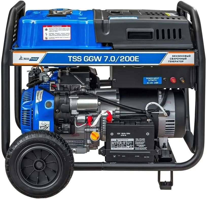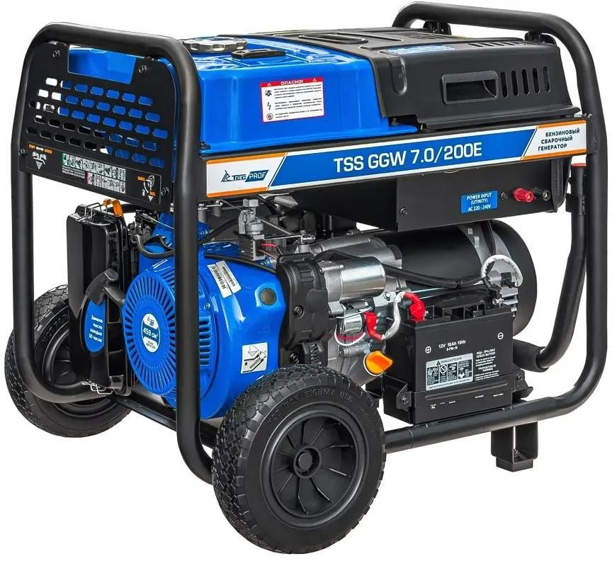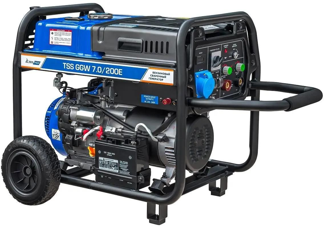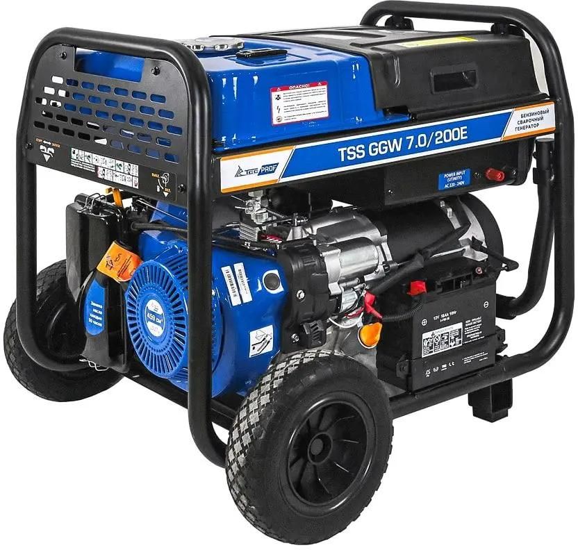 Описание Электрогенератор ТСС Prof GGW 7.0/200E [45625] Это профессиональная модель, разработана специально для проведения сварочных работ в тяжёлых условиях эксплуатации. Номинальный сварочный ток составляет 200А при продолжительности включения 100%! Аппарат имеет расширенные сварочные настройки. Номинальный сварочный ток 200 Ампер. Кроме этого, генератор можно использовать как автономный источник электроснабжения. Можно освещать место сварки, подключать электроинструмент - дрель, шлифмашинку, болгарку и т.п. Мощность генератора 7 кВт.