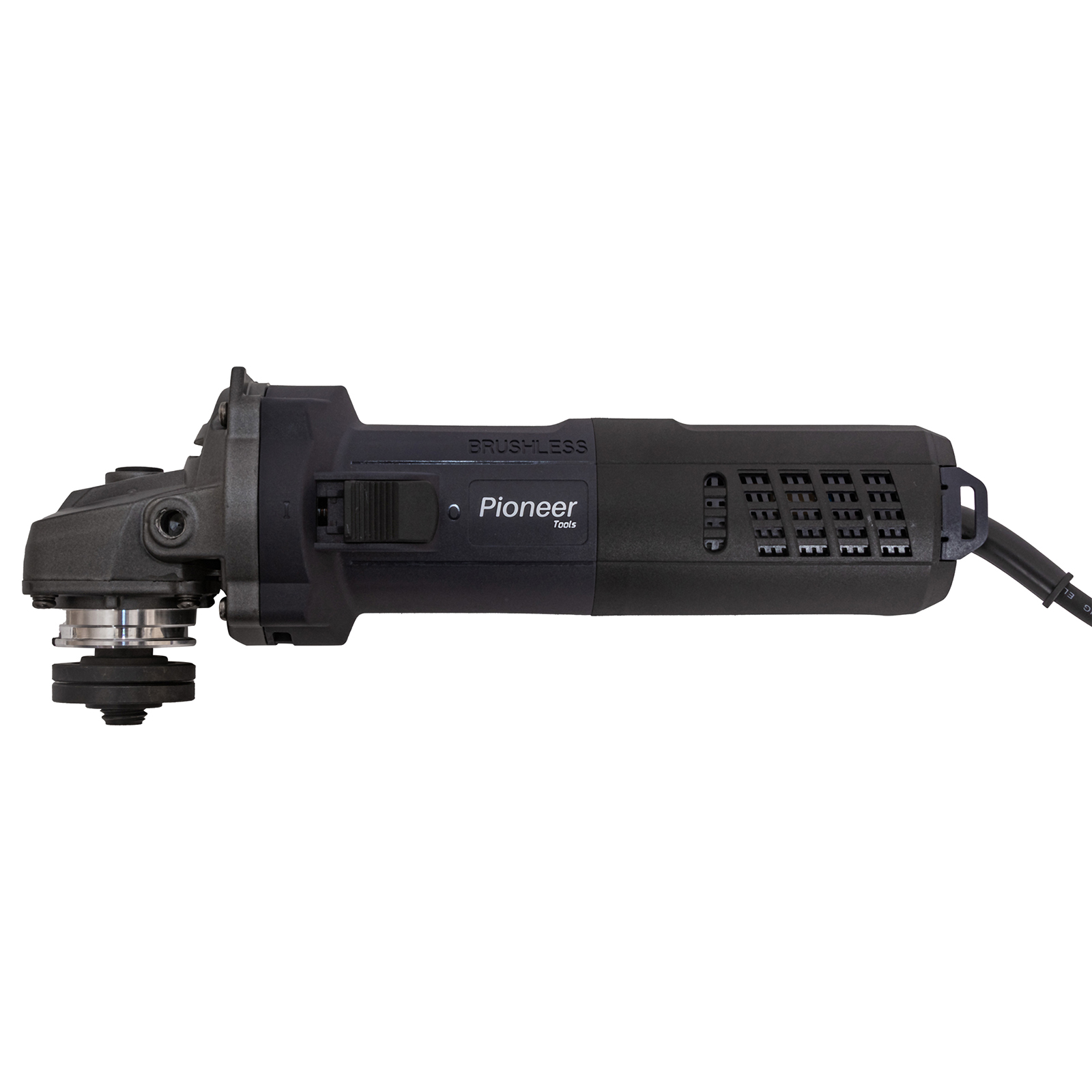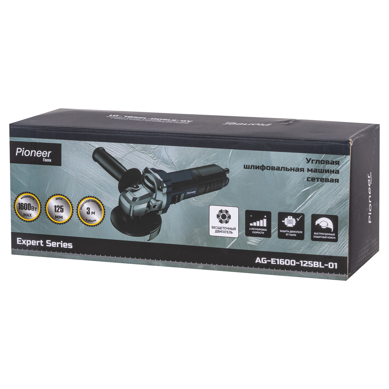 Описание Шлифовальная машина Pioneer AG-E1600-125BL-01 Мощная бесщёточная УШМ с регулировкой оборотов – надёжность и комфорт в работе Pioneer AG-E1600-125BL-01 — это современная угловая шлифмашина, сочетающая в себе высокую производительность, долговечность и эргономику. Благодаря бесщёточному двигателю мощностью до 1600 Вт, эта модель уверенно справляется с резкой, шлифовкой и зачисткой различных материалов — от металла до камня. Производительность и точный контроль Эта ушм 125 с регулировкой оборотов имеет диапазон скоростей от 3500 до 11000 об/мин с 6 уровнями настройки, что позволяет точно подобрать режим под конкретную задачу. Мощность в 1000 Вт (номинальная) и 1600 Вт (максимальная) обеспечивает быстрый и стабильный результат даже при высокой нагрузке. Электроника поддерживает стабильные обороты, исключая потери мощности.