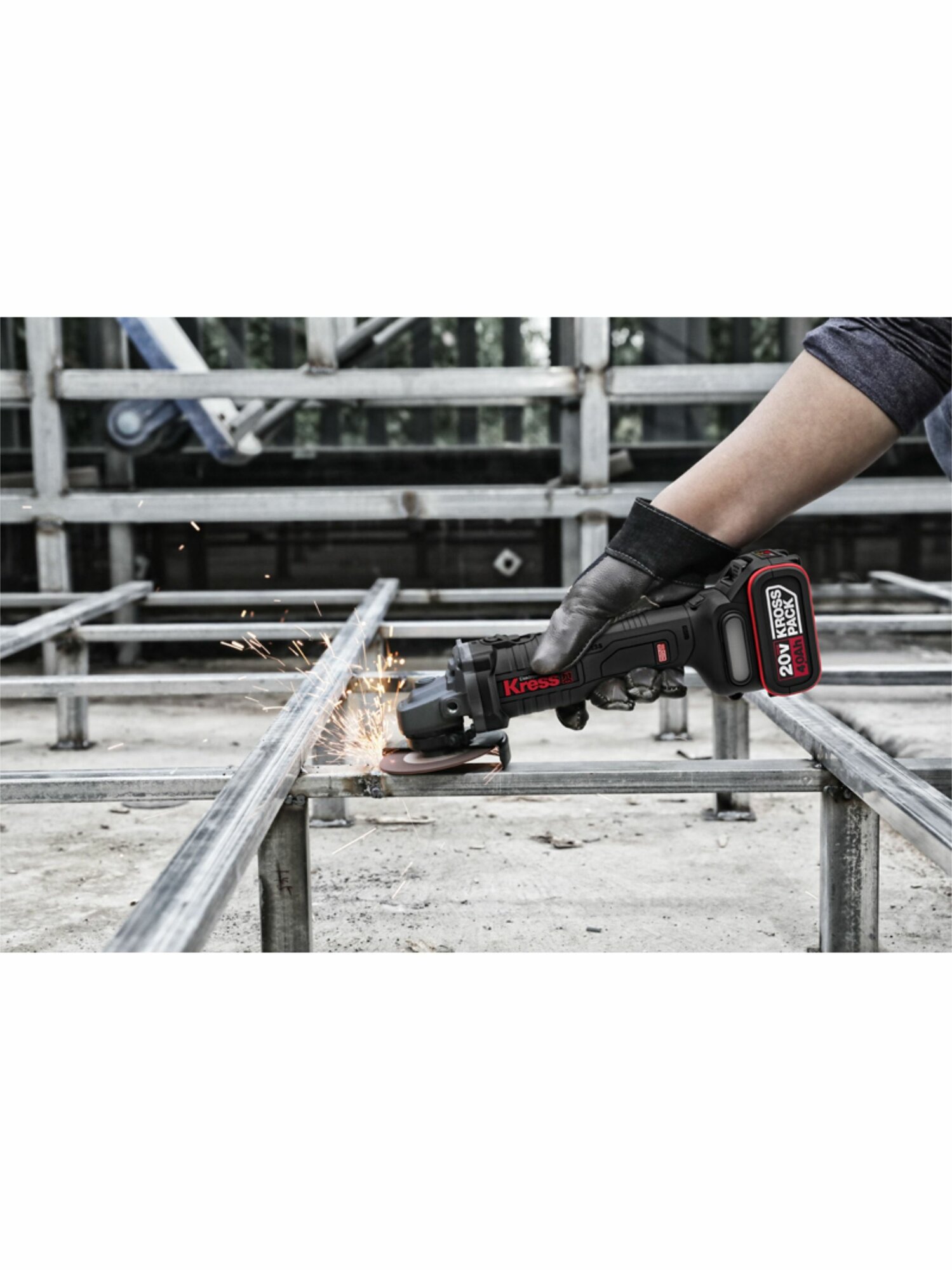 KRESS KU801 оснащена функцией автоматической остановки, что позволит полностью контролировать ход работы и обезопасит от случайных травм. Блокировка шпинделя поможет без труда заменить лезвия. Шлифмашина имеет удобный регулятор включения и выключения для простоты использования. Эргономичный противоударный корпус защитит инструмент от случайных повреждений. А съемная вентиляционная рамка защитит инструмент от мелкого мусора и продлит срок его службы. Универсальные аккумуляторы KROSS PACK Угловая шлифмашина KRESS KU801 20V работает от универсальных литий-ионных аккумуляторных батарей KRESS KROSS PACK ёмкостью 2 Ач и 4 Ач. Эти батареи совместимы со всей аккумуляторной техникой KRESS KROSS PACK. Для питания техники 20V нужна 1 батарея KROSS PACK 20V. KRESS KROSS PACK обладает следующими особенностями: Высокая мощность Быстрая зарядка Мгновенный запуск инструмента Низкий уровень шума Надежная фиксация на инструменте Индикатор состояния уровня заряда