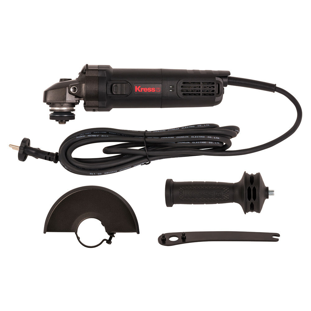 Описание Шлифовальная машина KRESS KUS20P Угловая шлифмашина (болгарка) KRESS KUS20P 1400Вт 125 мм электрическая — болгарка для резки и шлифовки материалов. Оснащена щеточным двигателем 1400Вт, скоростью 950 об/мин. Диаметр диска — 125 мм, резьба шпинделя — М14. Особенности угловой шлифмашины KRESS KUS20P Угловая шлифовальная машина KRESS с мощностью 1400 Вт и диаметром диска 125 мм может развивать скорость до 9500 об / мин и справится с любыми задачами. Модель оснащена системой контроля скорости. Полностью пылезащищенный корпус позволит работать с различными материалами. Кнопка блокировки шпинделя облегчает замену диска, а ползунковый переключатель обеспечивает удобство работы. Модель KUS20P обладает рядом преимуществ, делающих работу удобной и безопасной. Одним из главных достоинств является прорезиненная рукоятка, которая обеспечивает надежный хват и предотвращает скольжение инструмента в руке. Дополнительная боковая ручка позволяет установить инструмент под нужным углом и контролировать процесс обработки. Кроме того, машина имеет тонкий и компактный корпус, что облегчает работу в труднодоступных местах и позволяет выполнять операции с высокой точностью.