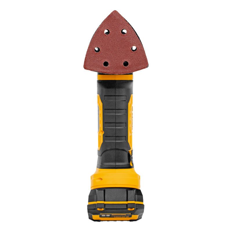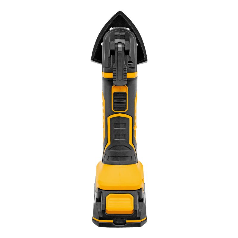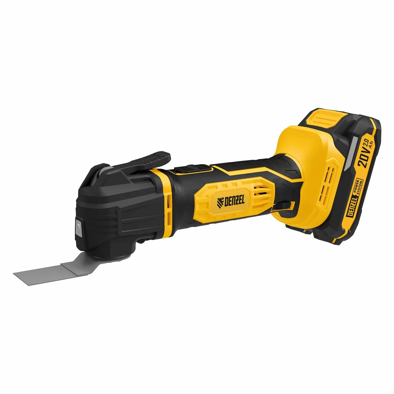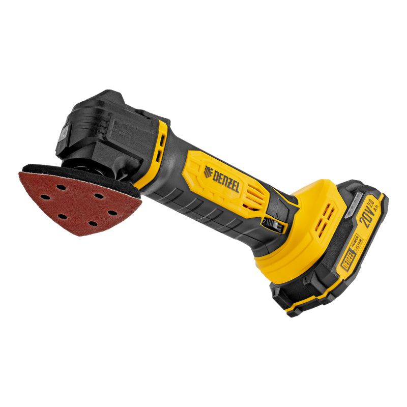 Описание Многофункциональный инструмент (реноватор) Denzel CMTH-20 [28405] Аккумуляторный многофункциональный инструмент Denzel CMTH-20 28405 работает от источника питания Li-Ion 20 В и используется для выполнения широкого спектра работ: зачистных, отрезных, шлифовальных и т.д. Совместим с различными видами оснастки и подходит для обработки практически любых материалов. Частота колебаний регулируется в диапазоне 5000-17000 об/мин, что позволяет эффективно решать поставленные задачи. Инструмент рекомендован для использования в быту. Преимущества Функция плавного пуска — инструмент включается без рывка. Простая подготовка к работе — благодаря быстросъемному механизму установка оснастки не занимает много времени и не требует использования дополнительных инструментов. Комфортная работа даже при слабом освещении — светодиодная подсветка рабочей зоны включается одновременно с запуском двигателя. Универсальность — аккумулятор Li-Ion емкостью 2 А·ч совместим со всеми инструментами единой платформы Denzel Power System 20V. Контроль уровня заряда — индикатор на корпусе батареи позволяет быстро определить, когда необходимо произвести подзарядку. Готовность к эксплуатации — в комплект поставки входит аккумулятор, зарядное устройство, полотно для древесины и пластика, шабер, шлифовальная подошва и набор шлифовальной бумаги. Степень защиты II — надежная изоляция предотвращает поражение электрическим током. Масса 0,83 кг — инструментом можно долго работать без ощущения усталости.