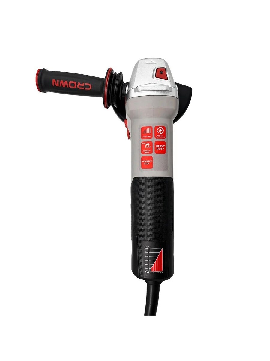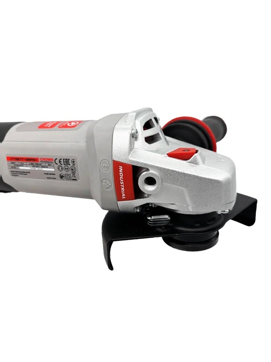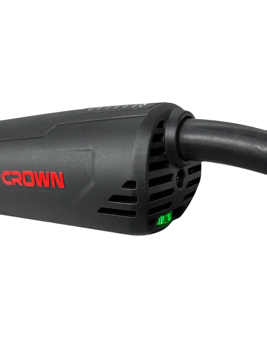 Описание Шлифовальная машина CROWN CT13678-125RSV Надежный и мощный инструмент для резки, шлифовки и зачистки! Угловая шлифовальная машина CROWN CT13678-125RSV – это профессиональное решение для выполнения широкого спектра задач по обработке металла, камня и других материалов. Благодаря высокой производительности, удобству и безопасности, эта модель станет вашим незаменимым помощником на производстве, стройплощадке, в мастерской или гараже. Основные характеристики: Мощный пылезащищенный двигатель 1700 Вт: обеспечивает высокую производительность и стабильную работу даже при интенсивных нагрузках. Регулируемая скорость вращения и поддержка оборотов: позволяет адаптировать инструмент под различные материалы и задачи. Защита от перегрузок: Продлевает срок службы инструмента. Защита от повторного пуска и защита от обратного удара (KICKBACK STOP): Защищает оператора и заготовку Индикатор состояния: встроенный в регулятор скорости индикатор состояния оповещает о состояние сети, а так же помогает пользователю правильно подбирать режимы работы и не превышать допустимые нагрузки Плавный пуск: Предотвращает резкий рывок инструмента при включении, что снижает риск потери контроля над УШМ, а так же продлевает срок службы инструмента