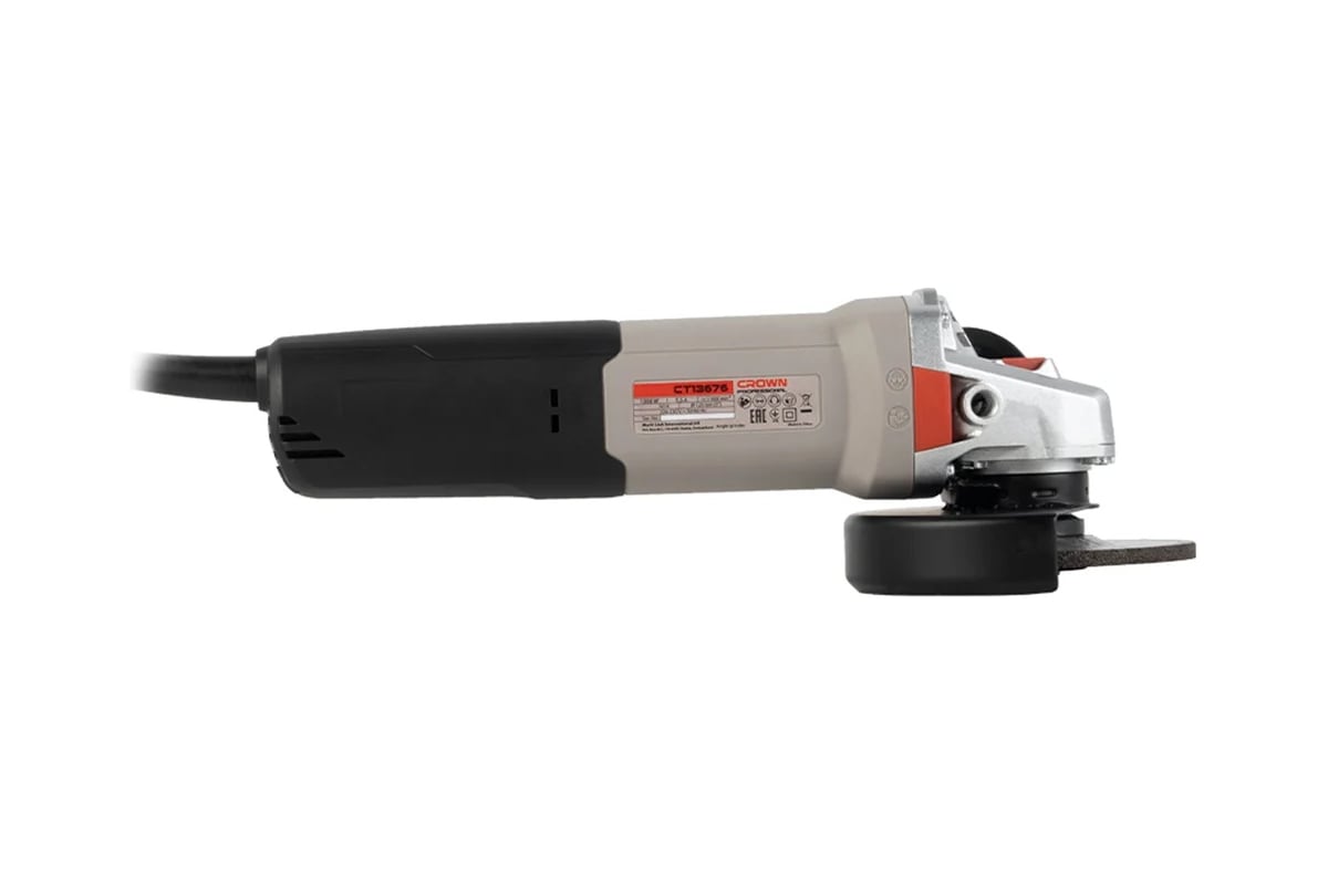 Описание Шлифовальная машина CROWN CT13676-125R Надежный и мощный инструмент для резки, шлифовки и зачистки! Угловая шлифовальная машина CROWN CT13676-125R – это профессиональное решение для выполнения широкого спектра задач по обработке металла, камня и других материалов. Благодаря высокой производительности, удобству и безопасности, эта модель станет вашим незаменимым помощником на производстве, стройплощадке, в мастерской или гараже. УШМ CROWN CT13676-125R построена на основе нового уникального электродвигателя HEAVY DUTY MOTOR, который обладает: Увеличенным диаметром ротора до 40 мм, На 50% большим крутящим моментом нежели ранее используемые электродвигатели Crown, Высокой стойкостью к нагреву во время работы, Совершенной пылезащитой ротора и статора, которая позволяет работать любой оснасткой с любыми материалами.