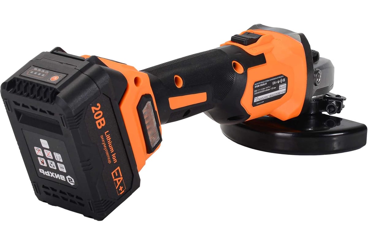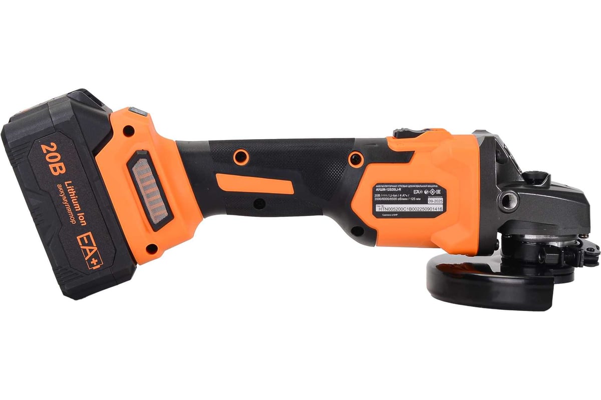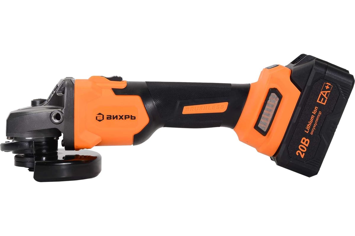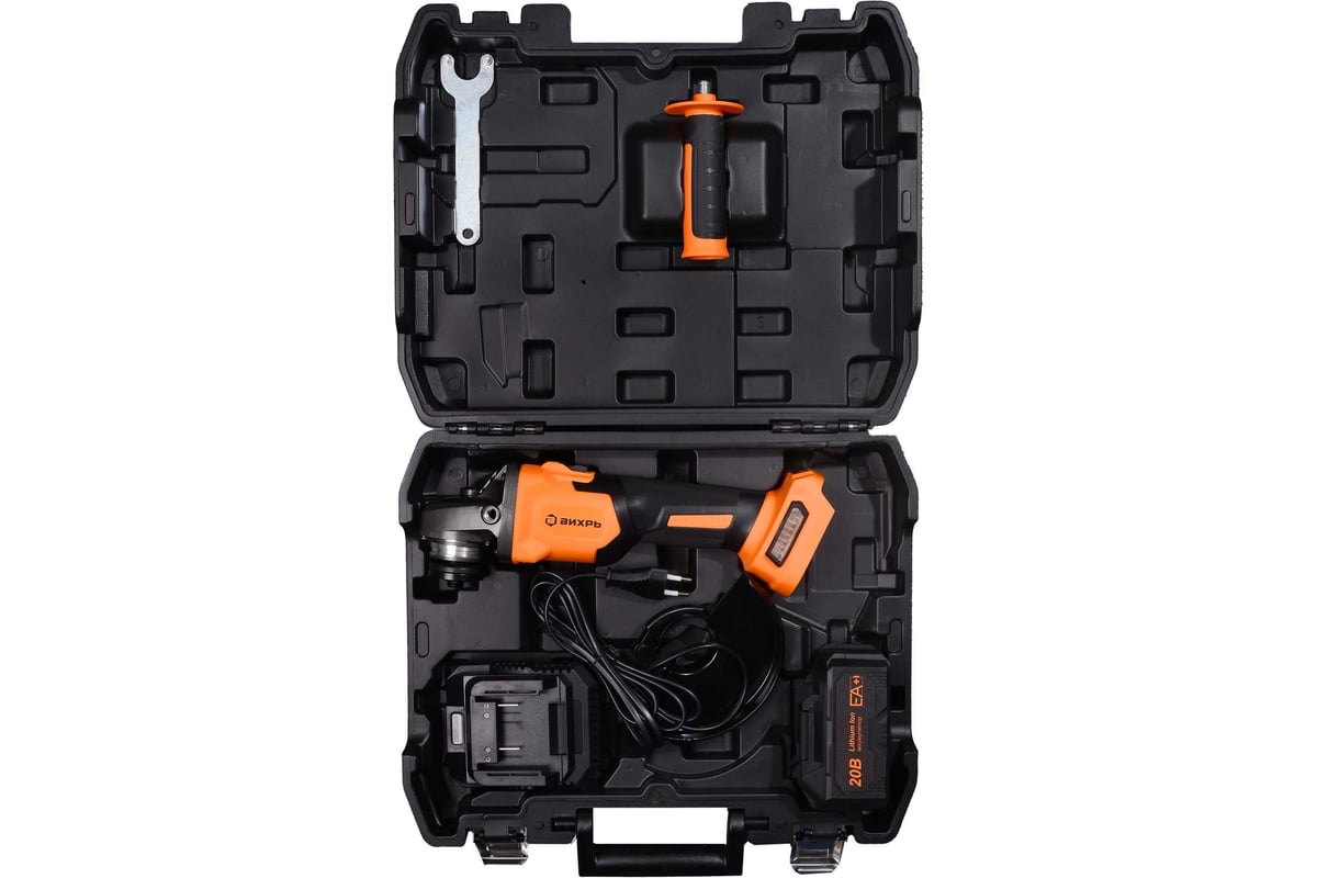 Описание Шлифовальная машина Вихрь АУШМ-125/20Li-R [72/12/47] Углошлифовальная машина Вихрь модели АУШМ-125/20 представляет собой универсальный электроинструмент для обработки твёрдых поверхностей. С её помощью можно выполнять резку и шлифовку металлических изделий, бетонных конструкций, кирпичной кладки и других строительных материалов. Инструмент работает от литий-ионного аккумулятора с параметрами 20 В и 4 Ач, что гарантирует длительную автономную эксплуатацию и достаточную мощность для выполнения сложных задач. Бесщёточный двигатель нового поколения обеспечивает высокую эффективность работы при минимальном уходе. Максимальная скорость вращения достигает 10 000 об/мин, что значительно ускоряет процесс обработки материалов. Защитные функции включают систему плавного пуска, которая снижает стартовую нагрузку на механизм, и автоматическую защиту от перегрузок – она отключает инструмент при превышении допустимых значений, предохраняя двигатель от повреждений. Удобство использования обеспечивается быстрозажимным защитным кожухом, который можно регулировать без дополнительных инструментов. Боковая рукоятка эргономичной формы обеспечивает надёжный хват и точный контроль над инструментом во время работы. Комплектация включает прочный фирменный кейс, который защищает инструмент и аксессуары при хранении и транспортировке, обеспечивая их сохранность.