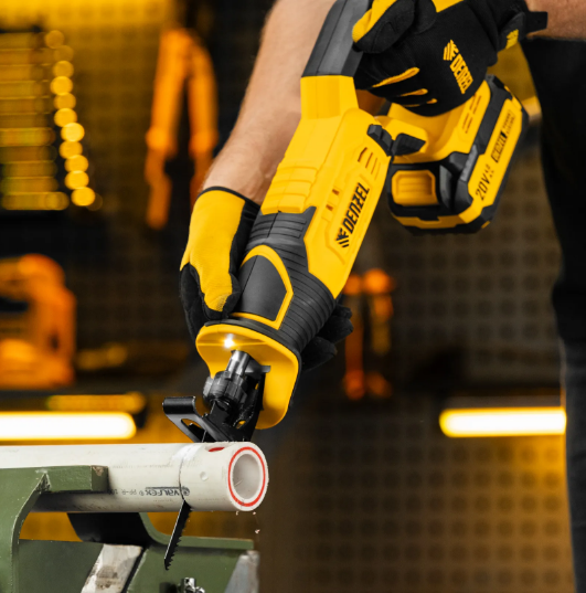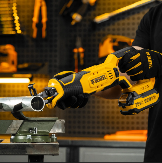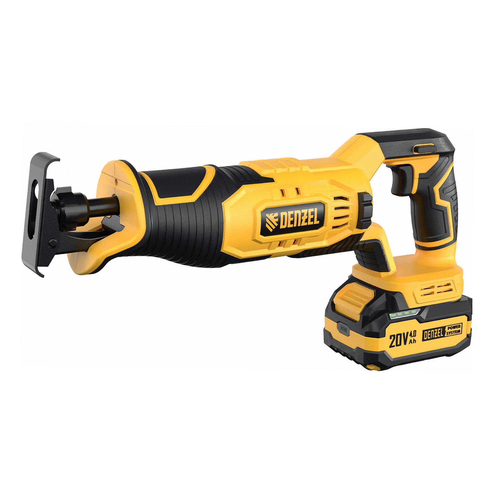 Описание Пила сабельная Denzel RS-180 [28801] Аккумуляторная сабельная пила Denzel RS-180 28801 поставляется с аккумулятором Li-Ion 20 В емкостью 4 А·ч и предназначена для распиливания заготовок из древесины, металла и других материалов. Максимальная глубина пропила в древесине составляет 180 мм, в стали — 13 мм. У аккумулятора Li-Ion отсутствует эффект памяти, благодаря чему допускается подзарядка без риска потери емкости. Такое решение обеспечивает длительную и эффективную работу инструмента. Пила оптимальна для бытового применения. Преимущества Быстрая замена пильного полотна — благодаря быстрозажимному замку установка оснастки не занимает много времени. Безопасность — производитель предусмотрел защиту от случайного запуска. Универсальность — аккумулятор совместим со всеми инструментами единой платформы Denzel Power System 20V. Токоотдача 10С — аккумуляторная батарея обладает высоким ресурсом, благодаря чему прослужит дольше. Контроль заряда — LED-индикатор позволяет быстро оценить необходимость подзарядки аккумулятора. Комфортная работа в условиях слабой освещенности — предусмотрена подсветка рабочей зоны. Эргономичность — обрезиненная рукоятка удобно ложится в руку и снижает вибрации, что позволяет работать с комфортом. Удобная эксплуатация — пила с аккумулятором весит 2,4 кг и отличается компактностью, что позволяет снизить нагрузку на руку. Готовность к эксплуатации — аккумулятор и зарядное устройство входят в комплект поставки.