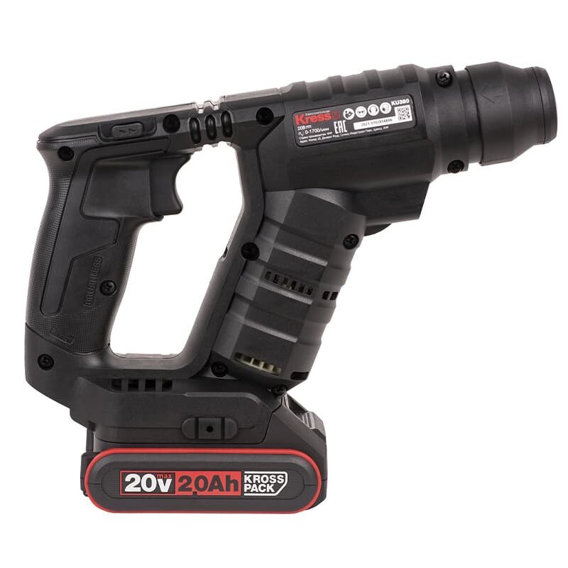 Описание Перфоратор KRESS KU380 Аккумуляторный перфоратор KRESS KU380 —лучший выбор для профессионалов, которым нужна мощность и простота использования. Особенности аккумуляторного перфоратора KRESS KU380 Благодаря бесщеточному двигателю перфоратор меньше нагревается и работает до 50% дольше. Инструмент имеет 3 режима работы: сверление, сверление с ударом и отбойный молоток. Сила удара составляет 1,7 Дж и частота ударов до 5300/мин дает легко сделать отверстие в бетоне, кирпиче, чистить поверхность металла, снять плитку. Наличие реверса позволяет вынуть бур в стене, если он застрял. Дизайн инструмента разработан для комфортной работы, чтобы уменьшить нагрузку на оператора. Прорезиненная эргономичная ручка обеспечивает удобный захват. Благодаря компактным размерам и легкому весу перфоратор удобно брать с собой. Комплектация KRESS KU380 20V Перфоратор поставляется с двумя аккумуляторами емкостью 2Ач. Зарядным устройством 2А, сменным быстрозажимным патроном для сверления и пластиковым кейсом.