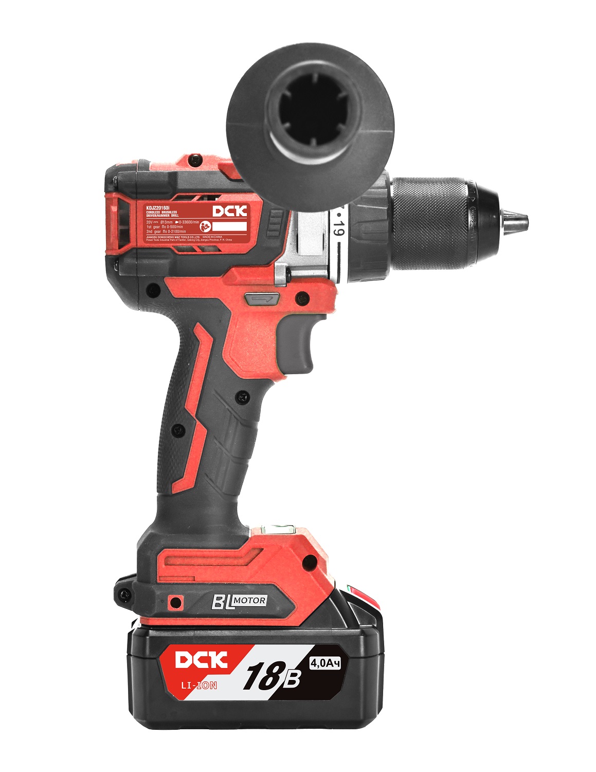 Описание Дрель-шуруповерт DCK KDJZ20160I KDJZ20160i - ударная дрель-шуруповерт от производителя DCK имеет самый большой в линейке курутяший момент 160 Нм (лето 2025). Мощный бесщеточный мотор работает от аккумуляторов 18 В. Справляется закручиванием длинных конструкционных саморезов, сверлением дерева, металла, а так же кирпича и легкого бетона. 19 ступеней регулировки крутящего момента, режим сверления, на котором инструмент выдает максимальный крутящий момент, и режим сверления с ударом. Для работы по бетону или кирпичу предусмотрен ударный режим. В данном режиме помимо вращения добавляется продольный удар с частотой до до 33 600 уд/мин. Но, не смотря на впечатляющие характеристики данного шуруповерта, для интенсивной работы по бетону лучше все таки использовать перфоратор. Два режима скорости вращения: Имеется светодиодная подсветка с задержкой, расположенная под патроном. В нижней части рукояти находится переключатель для включения режима плавного набора скорости и режима KickBack контроля. В режиме плавного набора инструмент постепенно увеличивает скорость с нуля до своей маесимальной, это утобно для более точного позиционирования оснастки. Режим KickBack - режим для защиты рук оператора при заклинивании оснастки. Когда "Мозги" шуруповерта понимают, что произошло заклинивание, они отключают мотор, чем предотвращаю дальнейшее вращение инструмента и уберегают руки от повреждений. Инструмент собран из высококачественных надежных комплектующих, что обеспечит долгий срок службы. Цельнометаллический патрон обеспечивает надежную фиксации оснастки разных диаметров до 13 мм.