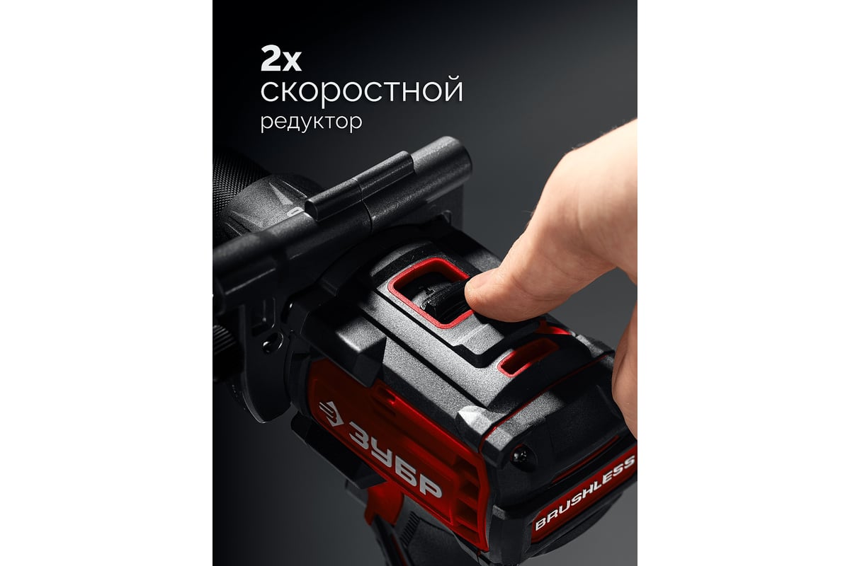 Описание Дрель-шуруповерт Зубр ДБ-165-21 LMS Бесщеточная дрель-шуруповерт ЗУБР системы LMS с максимальным крутящим моментом 165 Нм предназначена для работы с самым крупным крепежом (саморезы до 12 мм диаметром) и сверления отверстий до 40 мм в дереве. Встроенная защита от обратного удара предотвращает повреждение кисти при резкой блокировке вала. Комплектация с аккумулятором позволяет начать работу сразу после покупки Применение Для сверления отверстий в различных материалах (при установке соответствующих сверл), закручивания/откручивания резьбовых соединений (при установке соответствующих бит),перемешивания ЛКМ (при установке соответствующих насадок) Преимущества Единая аккумуляторная система LMS для 500+ инструментов Мощная аккумуляторная дрель-шуруповерт с двигателем BRUSHLESS Аккумулятор универсальной системы LMS повышенной емкости 2.0 А*ч позволяет инструменту работать дольше и эффективнее Максимальный крутящий момент на рынке благодаря мощному двигателю и специальному редуктору Двухскоростной планетарный редуктор позволяет как заворачивать с большим крутящим моментом, так и сверлить на высоких оборотах Встроенная отключаемая защита от обратного удара контролирует рывки инструмента и выключает двигатель, предотвращая травмы оператора Бесключевой одномуфтовый патрон с дотяжкой для максимальной простоты и скорости замены расходного инструмента Широкий диапазон регулировки крутящего момента превращает изделие в универсальный инструмент: от аккуратного закручивания маленьких винтиков до заворачивания крупных саморезов Электронный тормоз двигателя для исключения выбега при остановке Дополнительная рукоятка для надежности удержания инструмента и реализации всего его потенциала Высокотоковое зарядное устройство для быстрой зарядки аккумулятора Подсветка рабочего места способствует дополнительному удобству при работе в условиях недостаточного освещения Индикация заряда для контроля состояния батареи Скоба для крепления на поясе, устанавливаемая с любой стороны инструмента Реверс Рукоятка с противоскользящей накладкой