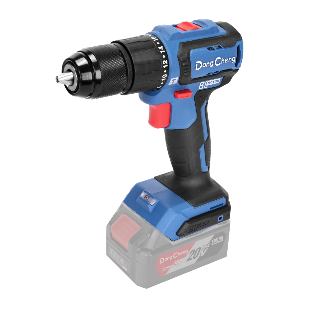 Описание Дрель-шуруповерт DongCheng DCJZ2040i13 (TYPE Z) Аккумуляторная ударная дрель-шуруповёрт DCJZ2040i13 — это компактный и удобный профессиональный инструмент с напряжением 20В, предназначенный для закручивания/выкручивания винтов, сверления дерева, металла, пластика, кирпича и других материалов. В комплектацию входят зажим для ремня, бита, картонная коробка. Инструмент поставляется без аккумуляторов и зарядного устройства. Бесщеточный двигатель Обеспечивает увеличенные мощность (крутящий момент до 45 Нм), время работы и срок службы. Регулировка скорости Позволяет переключаться между двумя режимами: низкие обороты (0-500 об/мин) и высокие обороты (0-1900 об/мин). Ударный режим Частота ударов 0-28500 уд/мин для эффективного сверления твёрдых материалов. Регулировка крутящего момента 18+2 ступеней крутящего момента для работы с различными материалами. Точная настройка крутящего момента предотвращает повреждение материала Металлический патрон 13 мм Отличается повышенной прочностью и износостойкостью, что особенно важно при интенсивных нагрузках и профессиональном использовании Подсветка рабочей зоны Встроенный светодиод освещает рабочую поверхность в условиях недостаточной видимости. Защита от перегрева и глубокой разрядки Встроенная электронная защита отключает двигатель при чрезмерной нагрузке или перегреве аккумулятора. При достижении уровня практически полной разрядки инструмент выключается. Эти функции продлевают срок службы инструмента. Реверсивный режим Мгновенное переключение направления вращения для выкручивания крепежа и извлечения застрявших сверл. Совместимость со всеми аккумуляторами линейки 20В Один аккумулятор подходит для дрели, угловой шлифмашины, перфоратора и других инструментов 20В бренда DongCheng. Легкий вес 1,3 кг (с аккумулятором 2 Ач) Снижает нагрузку на руки при продолжительной работе и использовании в труднодоступных местах. Эргономичная рукоятка и компактный корпус Анатомическая форма с антискользящим покрытием обеспечивает комфортный хват и снижает вибрацию. Компактный корпус - всего 171 см в длину.