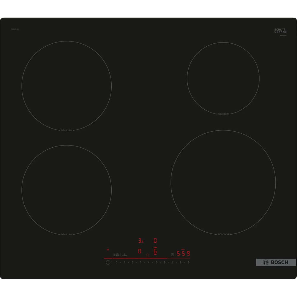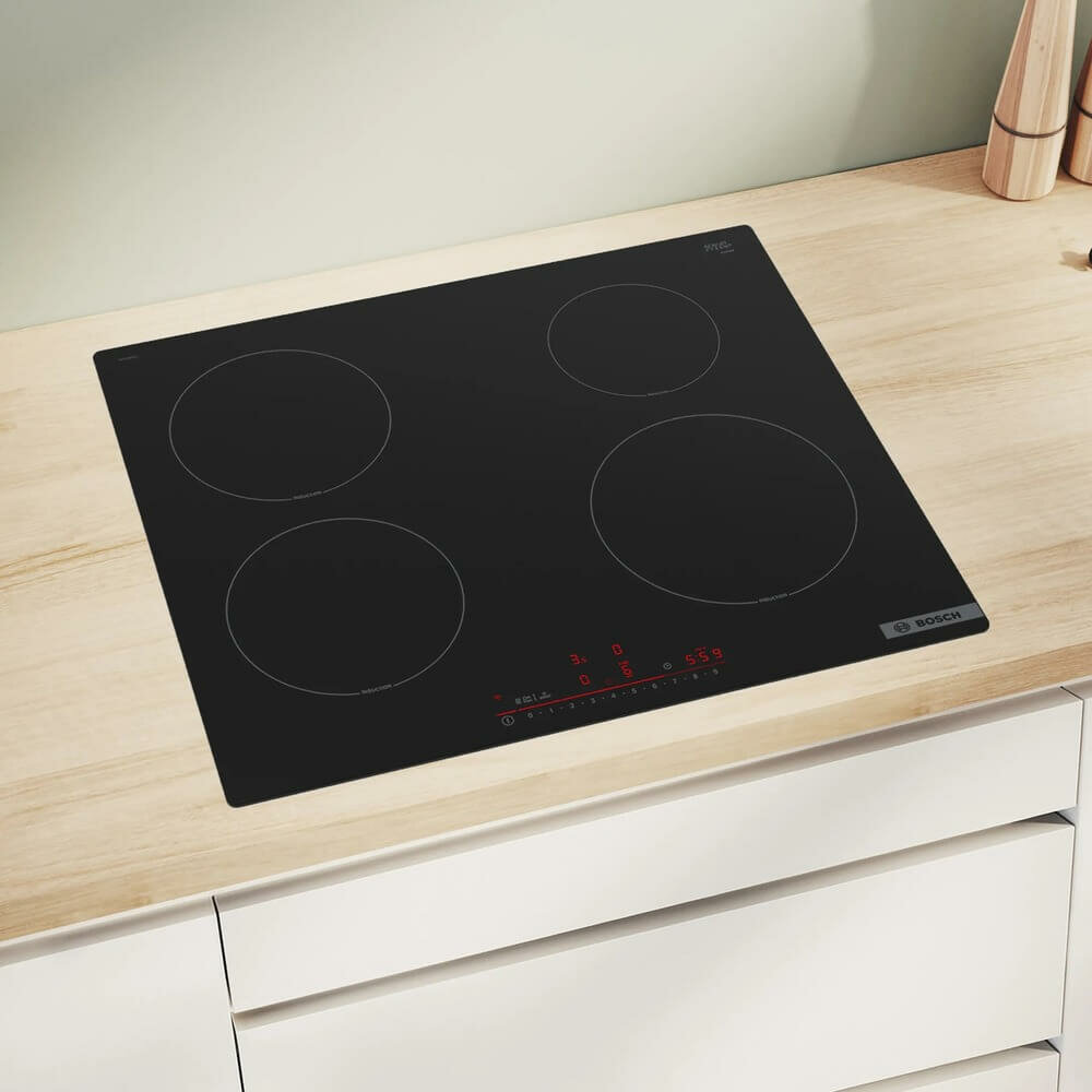 Описание Варочная панель электрическая Bosch PIE 61RHB1E индукционная Индукционная варочная панель Bosch PIE 61RHB1E имеет корпус высотой 5.1 см и компактная ширина 59.2 см экономят место, а аккуратные скругления по краям обеспечивают аккуратный внешний вид и удобство ухода. Встраиваемая конструкция рассчитана на нишу размером 56-56.2 х 49-50.2 см, что делает изделие универсальным решением для стандартных проектов. Минимальная толщина столешницы для надежного монтажа — 16 мм. Вес нетто 11.6 кг и длина сетевого кабеля 1.1 м упрощают транспортировку и подключение, при этом кабель поставляется без вилки для гибкости при установке под местные требования. Управление реализовано через сенсорные элементы DirectSelect, обеспечивающие простую и быструю настройку параметров: 17 ступеней мощности дают точную регулировку температуры, а режимы QuickStart и PowerBoost сокращают время разогрева для интенсивных задач. Функция ReStart возвращает предыдущее состояние после случайного отключения, что удобно в повседневной эксплуатации. Для любителей многопозиционных сценариев предусмотрен режим MoveMode, позволяющий перемещать посуду между зонами с автоматическим переназначением параметров нагрева. Режим поддержания тепла удерживает готовые блюда при нужной температуре без пересушивания. Продуманная безопасность включает главный выключатель, защитное отключение и блокировку от детей, а также двухпозиционный индикатор остаточного тепла для каждой конфорки, информирующий о сохранении температуры после выключения. Таймер прямого отсчёта сигнальный без отключения конфорок с функцией отключения для каждой конфорки обеспечивает независимый контроль времени готовки и автоматическое прекращение нагрева при необходимости. Функция Cleaning-пауза облегчает уборку: временное приостановление активных настроек делает поверхность безопасной для протирания. Ключевые преимущества: Эффективное индукционное нагревание с PowerBoost Сенсорное управление DirectSelect Поддержание тепла вместе с индикатором остаточного тепла