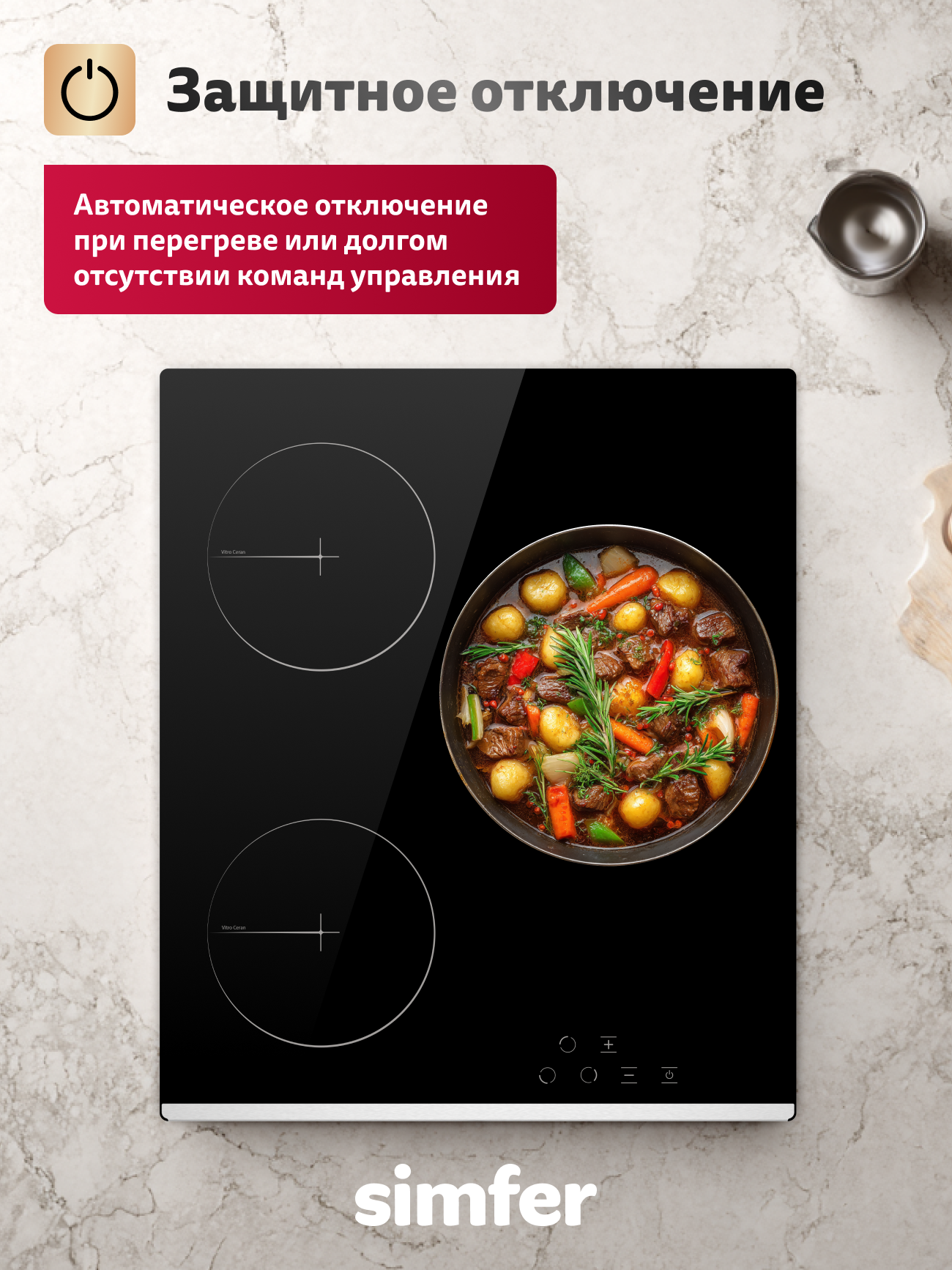 Описание Варочная панель электрическая Simfer H45D13S225 Варочная панель электрическая Simfer H45D13S225 представляет собой стильное и функциональное решение для вашей кухни. Черный цвет панели и три электрические конфорки обеспечивают удобство и комфорт в использовании. Панель оснащена сенсорным управлением с 9 уровнями мощности, что позволяет точно регулировать температуру приготовления пищи. Система автоотключения обеспечивает дополнительную безопасность. Кнопка блокировки панели предотвращает случайное включение панели детьми. Установка панели независимая, что позволяет легко интегрировать ее в любой кухонный интерьер. Размеры ниши для встраивания панели составляют 410х490 мм, а минимальная толщина столешницы – 38 мм. В комплект поставки входят инструкция по эксплуатации, гарантийный талон, сертификат и все необходимые аксессуары для монтажа. Выбирая варочную панель Simfer, вы получаете стильную и функциональную технику, которая обеспечит комфорт и безопасность на вашей кухне.