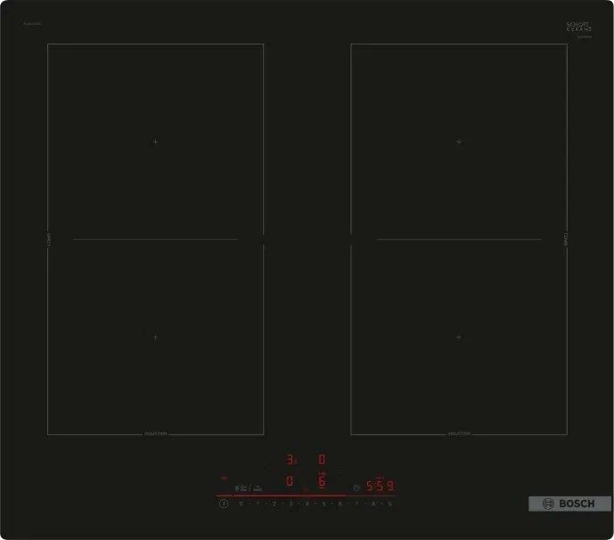 2 зоны объединения CombiZone. 17 уровней мощности (9 базовых и 8 промежуточных уровней). Дополнительные функции: Варочная панель BOSCH PVQ61RHB1E — это идеальное сочетание инновационных технологий и немецкого качества, которое сделает процесс приготовления пищи максимально комфортным и приятным.