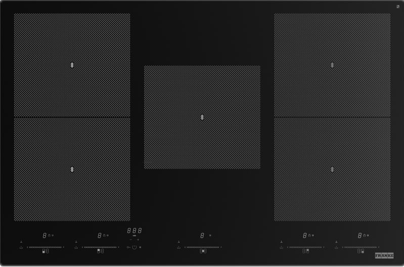Описание Варочная панель электрическая Franke FMY 808 I F KL BK индукционная Franke FMY 805 I F KL BK — индукционная варочная поверхность с черным стеклом и прямыми краями, обеспечивающая универсальность установки сверху или вровень со столешницей. Она оснащена 5 зонами нагрева, включая центральную зону размером 192 x 220 мм и две большие зоны 395 x 220 мм, которые обеспечивают высокую гибкость для разных типов посуды. Общая подключаемая мощность составляет 7,40 кВт, а габариты устройства — 770 x 510 мм. Управление варочной поверхностью осуществляется с помощью сенсорного слайдера с белым LED, предлагающего 9+1 ступеней мощности, а также функцию BOOST для быстрого нагрева. Модель также имеет индукционный мост (FLEXI) для объединения зон, что удобно для использования больших кастрюль или сковород. Встроенные функции паузы, отзыва и растапливания обеспечивают комфорт в процессе готовки, а таймер зон нагрева позволяет точно контролировать время. Технология K-LINK синхронизирует работу варочной поверхности с вытяжкой: при включении варочной поверхности автоматически активируется подсветка, а вытяжка настраивает свою скорость в зависимости от выбранной мощности. Для безопасности предусмотрены блокировка от детей и таймер отключения.