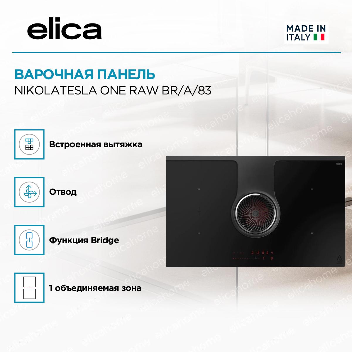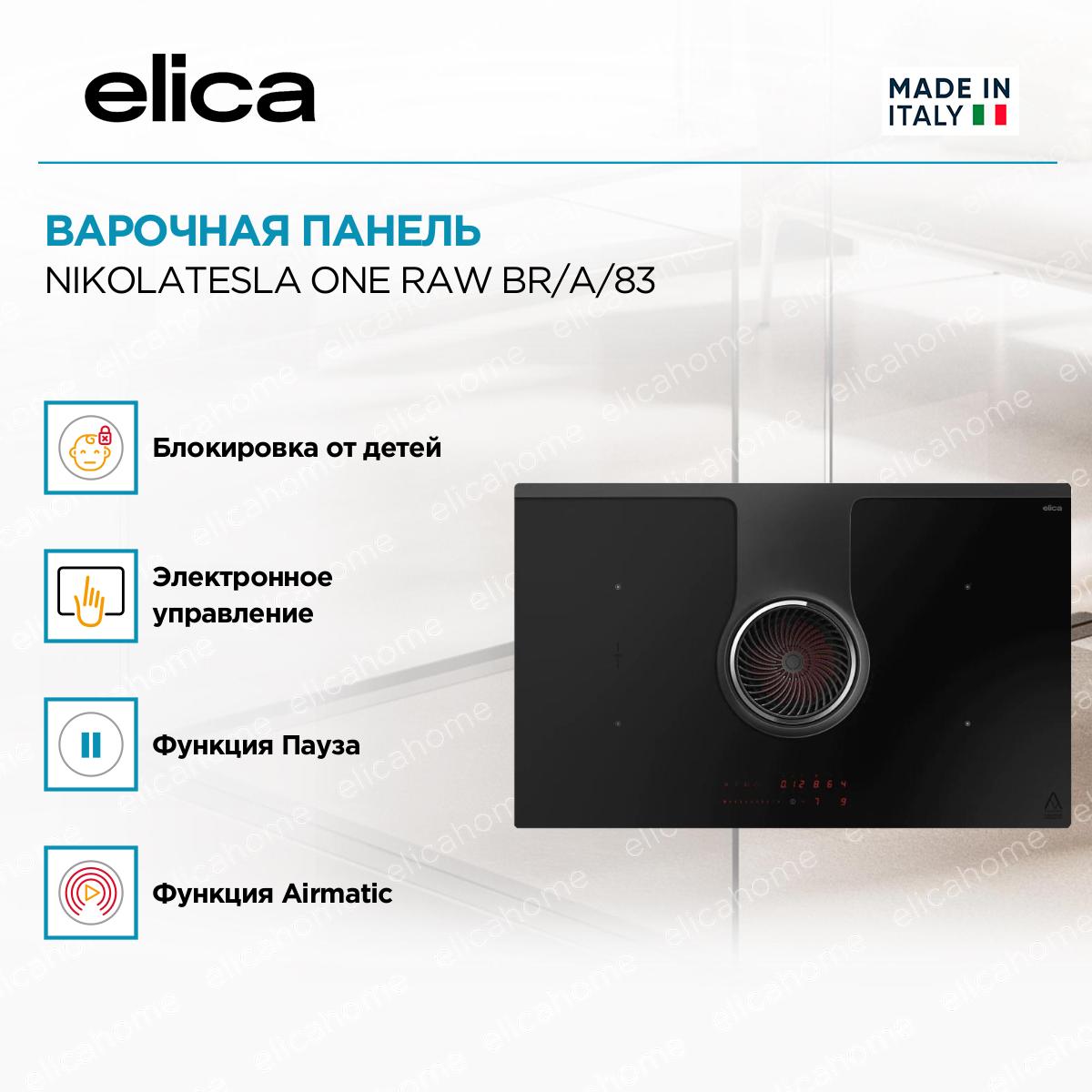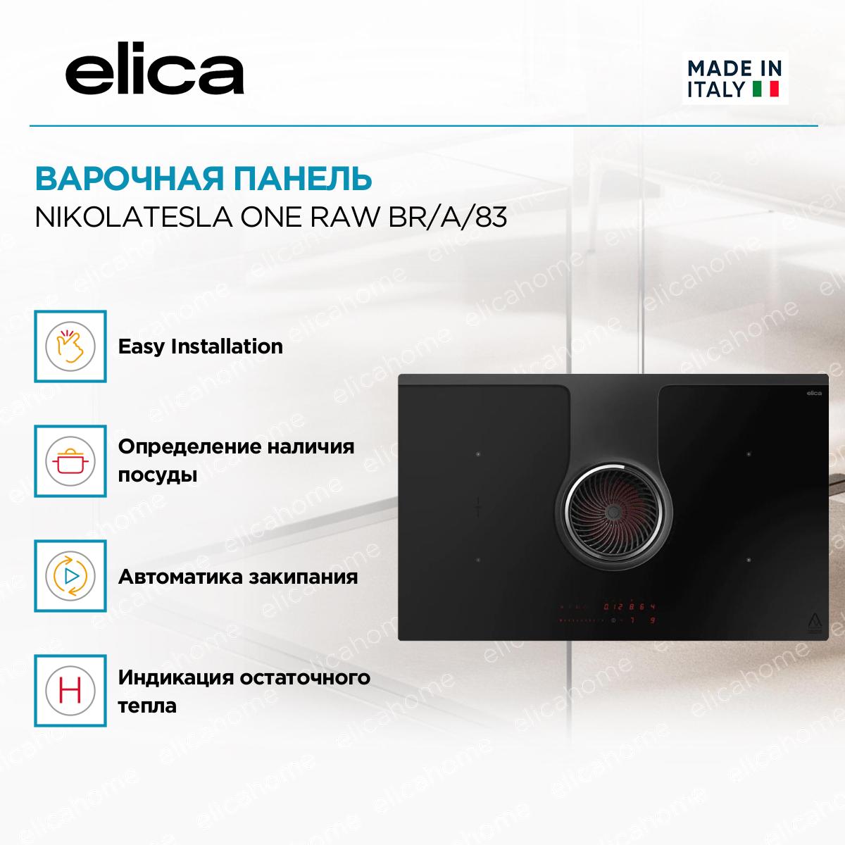 Описание Варочная панель электрическая Elica NIKOLATESLA ONE HP RAW BR/A/83 индукционная Индукционная варочная панель Elica Nikolatesla One Raw BR A 83 станет настоящим украшением любой современной кухни. Этот продукт высокого класса, произведенный в Италии, отличается не только функциональностью, но и великолепным дизайном, разработанным знаменитым дизайнером Fabrizio Crisà. Черный цвет панели идеально сочетается с любыми интерьерами, а материал из стеклокерамики обеспечивает высокую прочность и долговечность изделия. Панель оснащена четырьмя зонами для приготовления пищи, каждая из которых имеет свою мощность и диаметр конфорки. Благодаря функции Bridge, можно объединять зоны, что дает больше гибкости при выборе посуды для приготовления. Управление панелью осуществляется с помощью сенсорной панели, которая отзывается на любое прикосновение, делая процесс приготовления пищи максимально удобным и простым. Особенностью данной модели является встроенная вытяжка, которая обеспечивает отличную циркуляцию воздуха во время приготовления пищи. Вытяжка имеет 10 уровней мощности и может работать в режиме отвода или рециркуляции, обеспечивая максимальную производительность до 620 м³/ч. Благодаря индикации загрязнения фильтров, вы всегда будете в курсе, когда наступит время очистки. Техника оснащена рядом инновационных функций, которые облегчают процесс приготовления пищи. Функция Booster позволяет быстро нагревать посуду, а автоматика закипания сама отключает нагрев, когда вода начинает кипеть. Функция Пауза позволяет приостановить процесс приготовления, а затем продолжить его без потери настроек. Также есть функция безопасного выключения, которая автоматически отключает панель, если она не используется в течение определенного времени. Ключевые преимущества: Инновационный дизайн и высокая функциональность Встроенная вытяжка с функцией Airmatic Множество уникальных функций, таких как Booster, Пауза и безопасное выключение