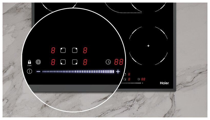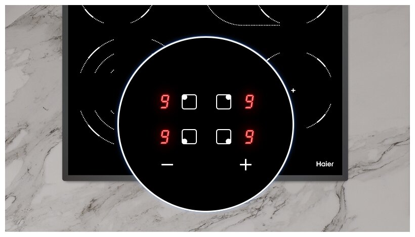 Описание Варочная панель электрическая Haier HHY-C64TOVB Hi-Light нагрев Стеклокерамическая варочная поверхность с нагревателями Hi-Light — это проверенное универсальное решение для кухни: подходит любая посуда, а ускоренный нагрев уменьшает время готовки и служит экономии электроэнергии. Слайдерное управление Сенсорный слайдер позволяет легко установить необходимый для приготовления уровень мощности варочной поверхности. Нужно лишь провести пальцем по специальной шкале — современное и удобное решение. Hi-light нагревускоренный нагрев и экономия электроэнергии Слайдерное управлениепросто проведите пальцем по шкале мощности и выберите нужный уровень Скошенный край Простота ухода и современный минималистичный внешний вид — это главные плюсы скошенного края стеклокерамической варочной поверхности. Зона нагрева с двойным расширением Готовьте в любой удобной посуде — зона нагрева с расширением позволяет использовать посуду разного диаметра. 9 уровней мощности Выбор именно той интенсивности нагрева, которая необходима для приготовления: точный контроль благодаря девяти уровням мощности.
