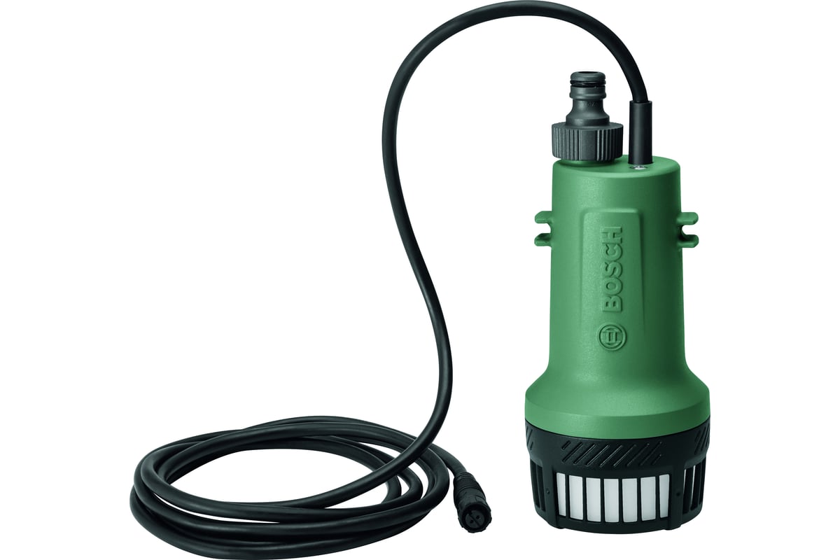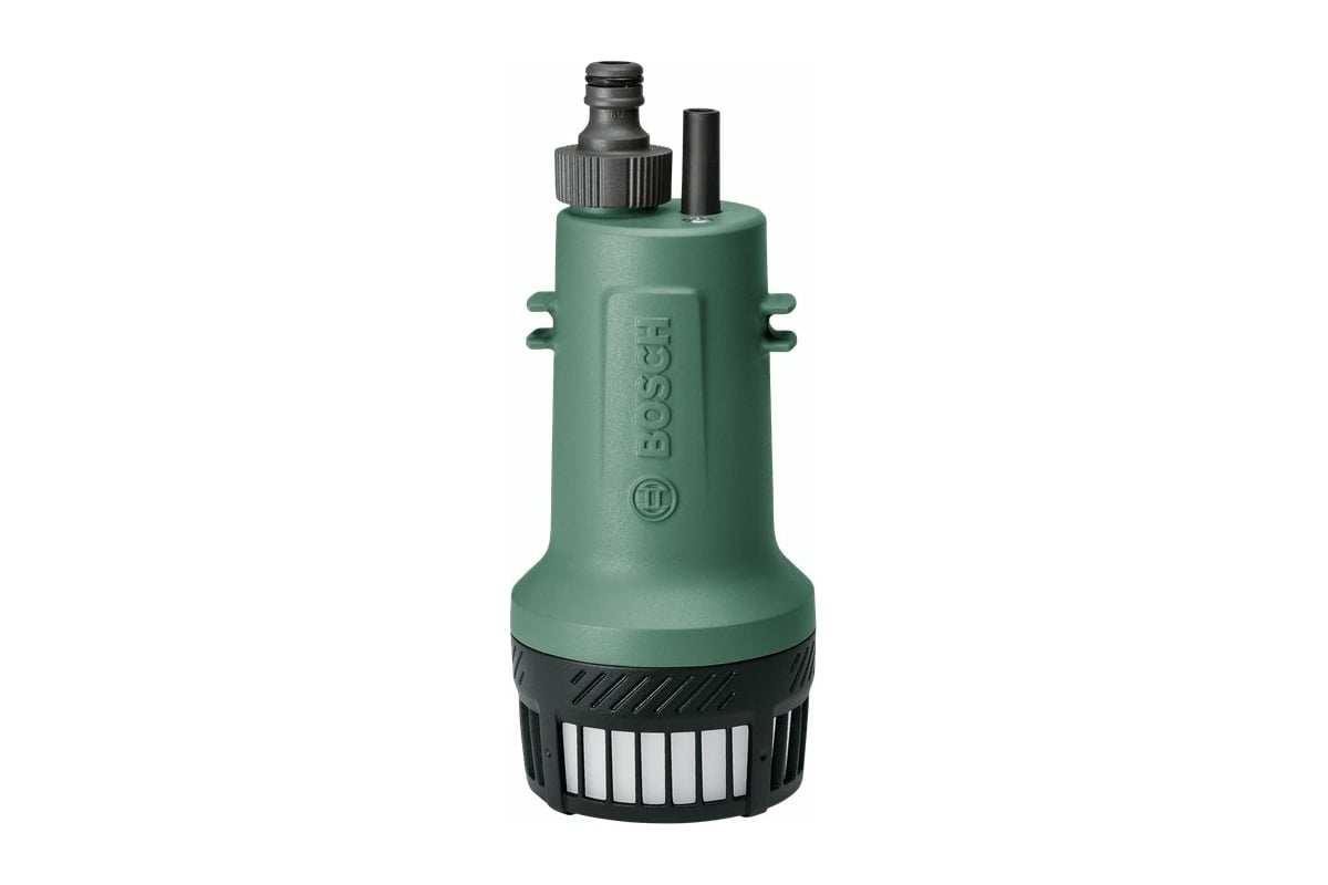 Описание Насос погружной Bosch GardenPump 18 [06008C4200] Садовый насос Bosch Garden Pump 18 используется для перекачивания воды из небольших резервуаров для полива участков. Благодаря аккумулятору устройство можно использовать вдали от розеток и генераторов. Аккумуляторный насос оснащен таймером, который позволяет включать и выключать устройство без вашего участия. Это актуально, например, для создания простой системы автоматического полива. Минимальное время работы составляет 5 мин, максимальное – 15 мин. Выбор делается отдельной кнопкой. Текущий интервал виден на светодиодной шкале на корпусе блока управления. Благодаря производительности и высоте подачи воды, радиус работы составляет 25 м, что достаточно для полива большинства загородных участков. Производительность – до 2000 л/ч. Глубина погружения – до 1,8 м. Напор – до 17,5 м. Аккумулятор серии Bosch Power 4 ALL 18В