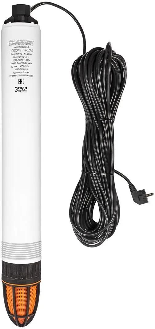 Описание Насос погружной Джилекс Водомет Проф 40/75 [4075] Погружной скважинный насос Джилекс ВОДОМЕТ 40/75 с обратным клапаном, арт. 4075 — максимальный расход 40 л/мин. Максимальный напор 75 м. Насос комплектуется обратным клапаном. Погружной насос для скважин «ВОДОМЕТ» 40/75 разработан для создания полноценных систем подачи воды в местах отсутствия централизованного водоснабжения. Области применения Погружной насос «ВОДОМЕТ» 40/75 подходит для использования в: колодцах и скважинах диаметром более 110 мм; открытых водоемах и резервуарах; системах автоматизированной подачи воды в частных домах; оросительных системах на садовых участках.