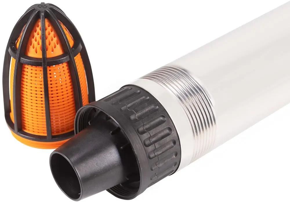 Преимущества модели: Конструкция насоса позволяет перекачивать воду с размером частиц до 2 мм, в том числе с большим содержанием песка — до 2 кг на кубометр воды. Насос защищен от всасывания грязи и песка съемным водозаборным фильтром, который также упрощает чистку в случае загрязнения. Конструкция насоса предполагает защиту электродвигателя от перегрева: его охлаждает поток воды, проходящий между корпусами двигателя и насоса.