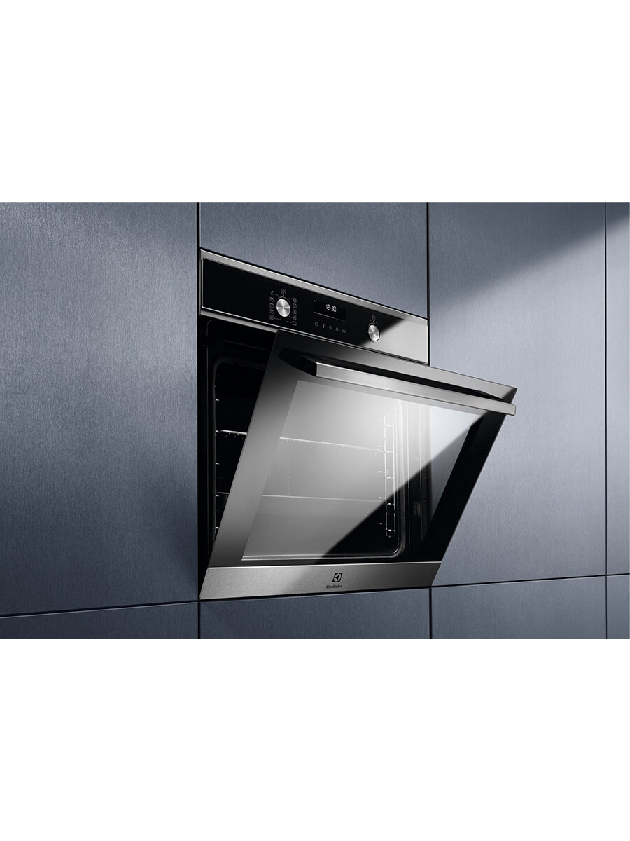 Описание Духовой шкаф Electrolux EOD 6P66 WX Духовой шкаф Electrolux EOD 6P66 WX современный встраиваемый электрический прибор серии 600 сочетает премиальную отделку из нержавеющей стали с эргономичным управлением и продуманной внутренней эргономикой. Внешний облик выдержан в лаконичном стиле: гладкая фронтальная панель, аккуратная фурнитура из стали и сенсорные переключатели создают ощущение технологичности и простоты в эксплуатации. Благодаря компактной высоте 59.4 см и стандартной ширине 59.5 см модель легко интегрируется в кухонный гарнитур, а параметры ниши для встраивания 59 х 56 х 55 см упрощают выбор места установки. Цветовые решения и металлография подчеркивают качество, поэтому устройство органично смотрится как в классическом, так и в современном интерьере. Внутренняя камера объёмом 72 литра рассчитана на серьёзные кулинарные задачи: пять уровней размещения противней и одна решётка дают свободу для многослойной готовки. Комбинация конвекции с кольцевым нагревом обеспечивает равномерное распределение температуры по всему объёму, а максимальная температура до 300 °C позволяет добиваться корочки и выпекать изделия, требующие интенсивного подрумянивания. Режимов целых девять, включая режимы для пиццы, горячего воздуха, влажной конвекции и приготовления замороженных продуктов — это универсальный набор для домашних экспериментов и повседневных приёмов пищи. Для любителей гриля доступен как стандартный гриль, так и турбо-гриль, что ускоряет процесс и улучшает результат на верхней части блюд. Отдельное место в функционале занимает технология SteamBake, которая аккуратно добавляет пар при выпечке, улучшая структуру и вкус хлебобулочных изделий и кондитерских изделий. Функция быстрого нагрева сокращает время ожидания, а встроенный таймер помогает контролировать процесс, освобождая пользователя от постоянного надзора. Для освещения камеры используется галогенная лампа, которая дает яркий и равномерный свет, позволяя точно оценивать степень готовности без открытия дверцы. Удобство обслуживания и безопасность продуманы до мелочей: пиролитическая очистка превращает остатки жира в золу, которую легко удалить, а защита от детей блокирует управление и предотвращает случайное включение. Система охлаждения и вентилятор охлаждения обеспечивают комфортную температуру фронтальной панели и защищают встроенную мебель. Сенсорные органы управления упрощают выбор режимов и настройку параметров, а навесные направляющие облегчают извлечение противней и перетасовку посуды. Дверца откидного типа мягко опускается, а фурнитура выполнена в тон корпуса, подчеркивая целостность решения. Ключевые преимущества: Пиролитическая очистка SteamBake Сенсорное управление