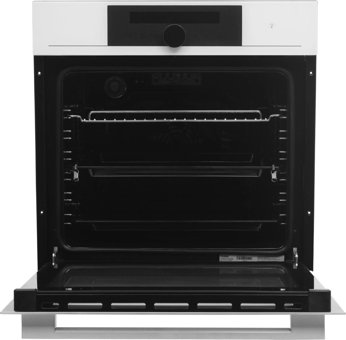 Описание Духовой шкаф Haier HOX-FP5RAWB Приготовление с использованием пара Использование пара при готовке — прием настоящих профессионалов. С ним выпечка получается пышной, с аппетитной золотистой корочкой. А при запекании мяса, рыбы или овощей данный режим поможет сохранить блюдо сочным, вкусным и более полезным. Расстойка теста Для равномерного подъёма теста духовка поддерживает температуру 30-35 градусов. Результат — идеальная выпечка. Такая, какой она должна быть. Телескопические направляющие Удобная и безопасная установка противня и его извлечение. Телескопические направляющие облегчают использование духовки: противень не упадет, даже если выдвинут полностью. Авторецепты Предустановленные популярные рецепты помогут достичь самых лучших результатов приготовления любимых блюд. Например, при использовании режима пиццы температура нагрева достигает 310 градусов, что позволяет приготовить по-настоящему вкусную традиционную пиццу! Духовой шкаф HOX-FP5RAWB серии Pacific5 имеет обновленную систему управления: сенсорная панель добавляет удобства в уходе, а поворотный переключатель, помимо своего расширенного функционала, является еще и лаконичным элементом дизайна. Особенностью этой модели является режим приготовления на пару: прием настоящих профессионалов, чтобы сделать блюдо сочнее и полезнее. Кроме того, духовой шкаф оборудован выдвижными телескопическими направляющими, функцией аква очистки и тройным остеклением дверцы, что делает использование и невероятно комфортным, и безопасным.