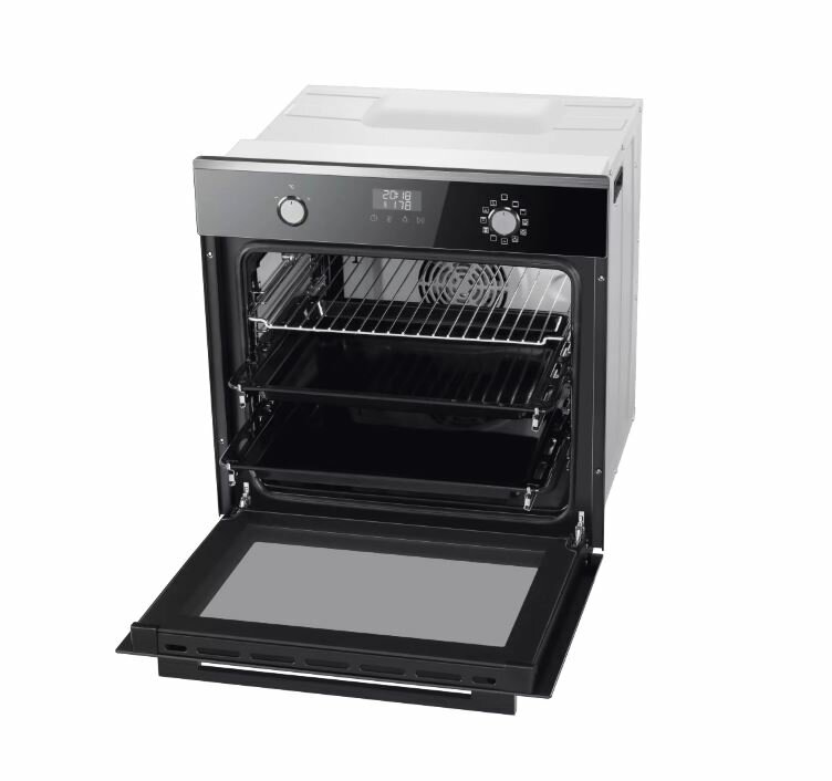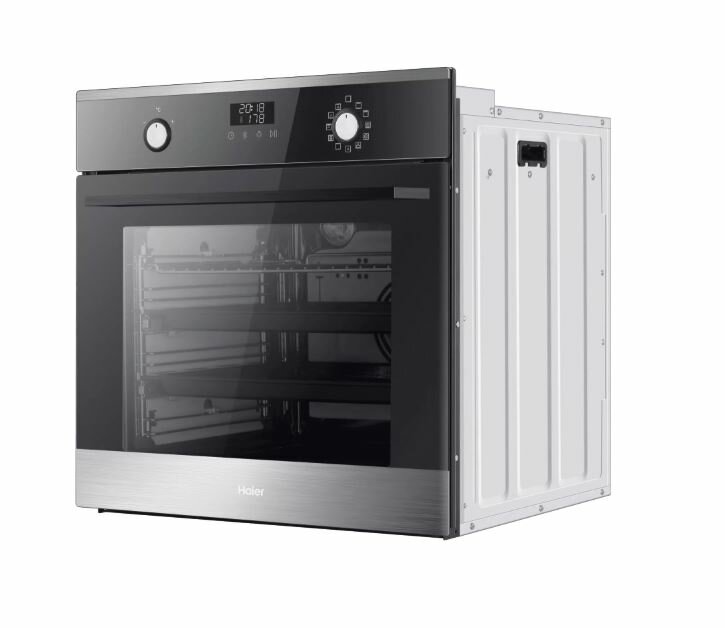 Описание Духовой шкаф Haier HOX-P11CGBX 11 режимов приготовления В духовке 11 режимов нагрева, включая классический нагрев сверху и снизу, режимы конвекции с принудительным перемешиванием горячего воздуха, гриль и даже специальные режимы для размораживания и расстойки теста. Любые блюда готовятся просто и получаются превосходно — для каждого случая найдётся оптимальный режим. 6 уровней приготовления Легко готовить так, как этого требует рецепт: благодаря 6 уровням установки противней обеспечивается идеальное пропекание и подрумянивание. Есть возможность использовать сразу несколько уровней. Специальный режим для расстойки теста Для равномерного подъёма теста духовка поддерживает температуру 30-35 градусов. Результат — идеальная выпечка. Такая, какой она должна быть. Электронное устройство программирования С помощью электронного устройства программирования с сенсорными полями управления можно задать нужное время начала и окончания приготовления с автоматическим отключением духовки по истечении установленного времени или просто установить таймер со звуковым оповещением. Также на дисплее отображается установленная для режима нагрева температура. Телескопические направляющие Удобная и безопасная установка противня и его извлечение. Телескопические направляющие облегчают использование духовки: противень не упадет, даже если выдвинут полностью. Съемная дверца с плавным закрыванием Каждый раз, используя духовку, Вы оцените удобство плавного закрывания дверцы. Причем для очистки дверцу можно полностью снять и даже легко разобрать, чтобы помыть все их трех ее стекол отдельно. Все удобно и продуманно. Духовой шкаф HOX-P11CGBX имеет современный лаконичный дизайн и богатое оснащение дополнительными опциями. 11 режимов приготовления, включая режимы с конвекцией и специальный режим расстойки теста, большой внутренний объем и телескопические направляющие для противней позволят Вам с легкостью готовить любимые блюда, неизменно получая отличные результаты. Также в этой модели Вы непременно оцените плавное закрывание дверцы, оснащенной 3-мя стеклами, и удобство очистки.