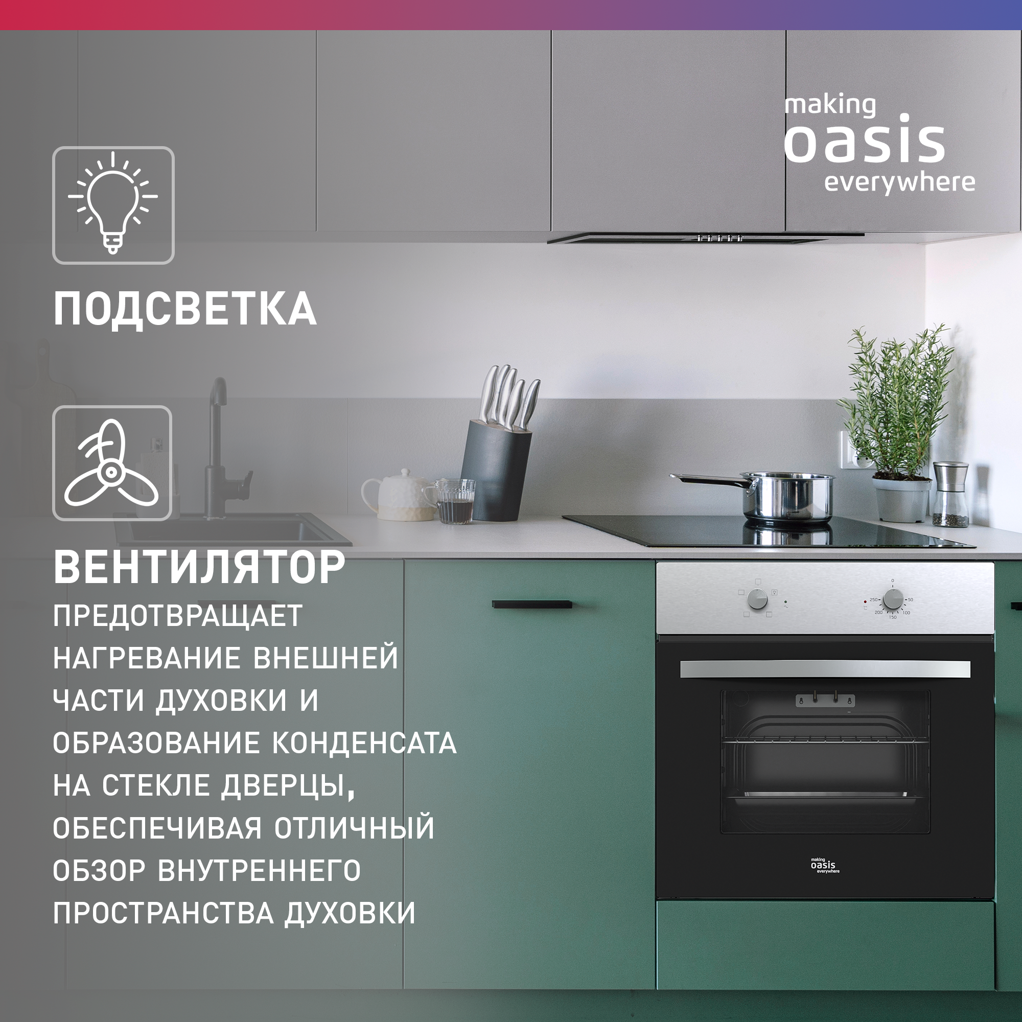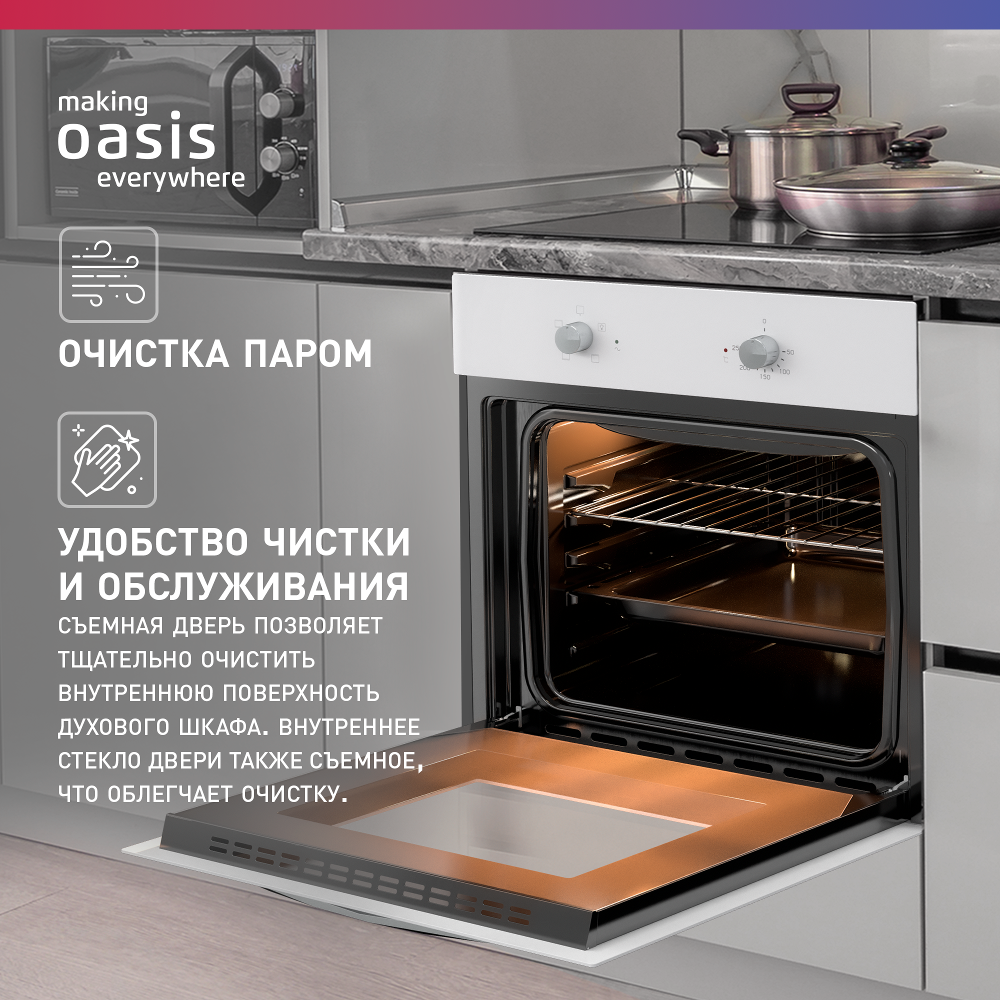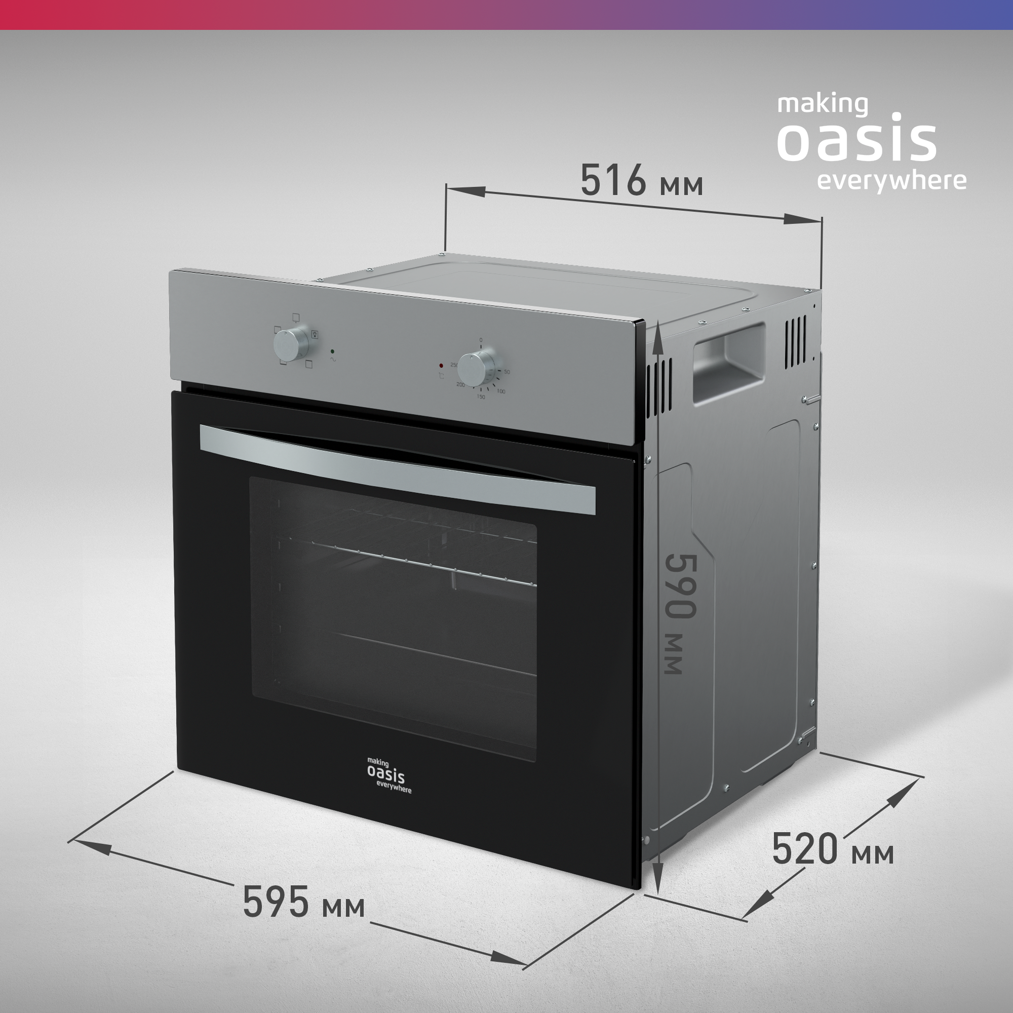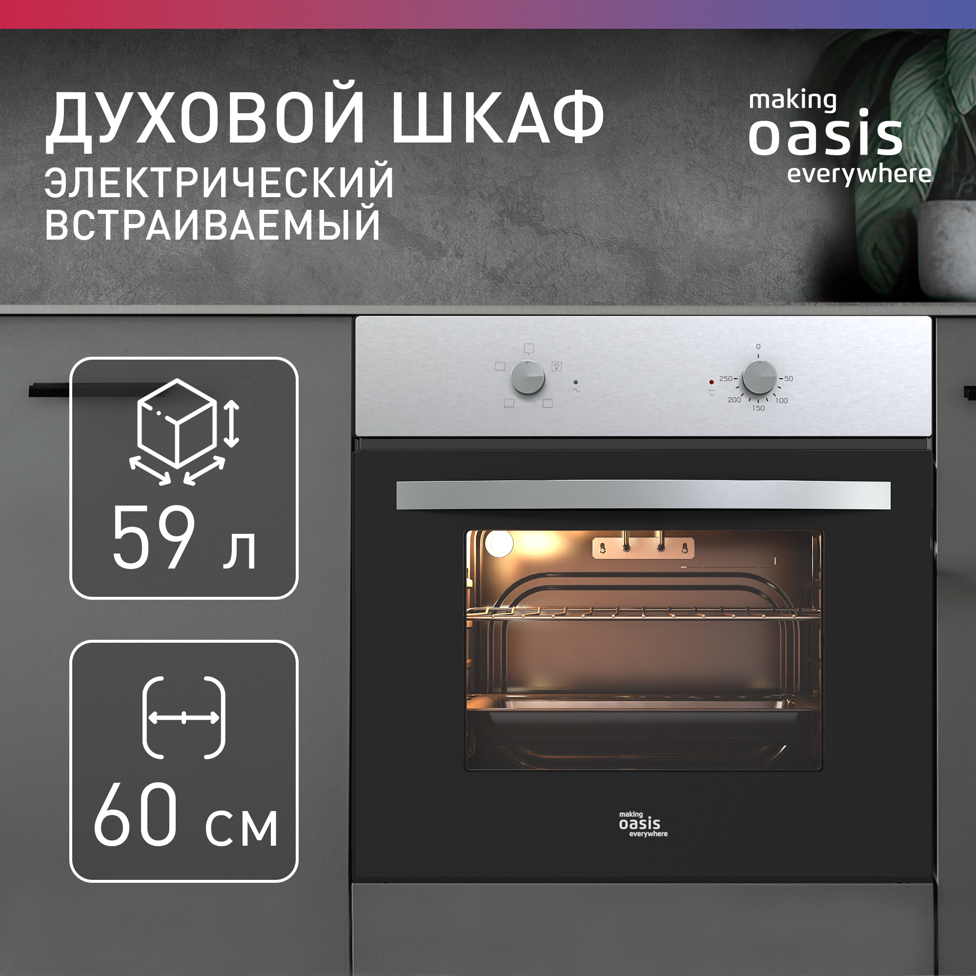 Описание Духовой шкаф Oasis D-N Духовой шкаф для кухни давно стал незаменимым помощником для приготовления разнообразных блюд. Духовка электрическая D-N оснащена множеством удобных функций, которые помогут приготовить вкусную и полезную еду максимально быстро и легко. Духовой шкаф электрический встраиваемый обладает функцией программирования работы духовки, классом энергоэффективности А, легкосъемным стеклом для простоты чистки, а также его можно разместить в любом месте на кухне, выбрав наиболее удобное расположение по высоте. Электродуховка имеет дверцу с двойным стеклом, 4 режима работы, механический тип управления. Духовая печь имеет объем 59 л. Противень для духовки 1 шт. и решетка для духовки 1 шт. в комплекте. Цвет электро духовки - нержавеющая сталь.
