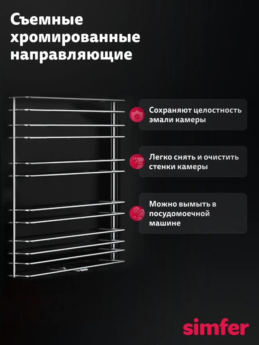 Дополнительные функции: Хромированные направляющие: Защита от царапин и долговечность. Таймер с автоотключением: Предотвращает перегрев и сохраняет продукты в идеальном состоянии. Индикация мощности, режима работы и температуры: Все необходимые данные всегда под рукой.