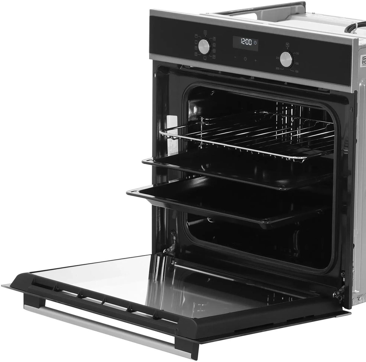 Описание Духовой шкаф Electrolux EOD 5H70B X Духовой шкаф Electrolux EOD5H70BX — это высококачественное устройство, которое отвечает всем требованиям современного потребителя. Модель произведена в Евросоюзе и обладает гарантией на 1 год, что говорит о надежности и долговечности товара. Этот электрическая духовка серии 600 отличается стильным дизайном и функциональностью. Устройство выполнено из нержавеющей стали, что придает ему элегантный и современный вид. С его помощью можно приготовить разнообразные блюда, благодаря восьми режимам работы. Шкаф оснащен функцией быстрого нагрева и индикацией остаточного тепла, что делает его использование максимально удобным и безопасным. Особенностью данной техники является наличие функции SteamBake, которая позволяет приготовить блюда с использованием пара. Это делает вкус еды более насыщенным и сохраняет все полезные вещества. Кроме того, в приборе есть функция конвекции, турбо-гриль и большой гриль, что позволяет приготовить разнообразные блюда на любой вкус. Дверца духовки откидная, с плавным закрытием, что обеспечивает безопасность и комфорт в использовании. Освещение камеры галогенное, что обеспечивает яркий и равномерный свет. Вентилятор охлаждения предотвращает перегрев устройства и продлевает его срок службы. Модель оснащена двумя противнями и одной решеткой, что позволяет приготовить несколько блюд одновременно. Максимальная мощность прибора составляет 2750 Вт, а максимальная температура — 250 градусов. Дисплей, а также поворотные утапливаемые и сенсорные переключатели делают управление духовым шкафом максимально удобным и интуитивным. Паровая очистка обеспечивает легкую и быструю уборку камеры после использования. Ключевые преимущества: Функциональность и стильный дизайн Разнообразие режимов приготовления Безопасность и удобство в использовании