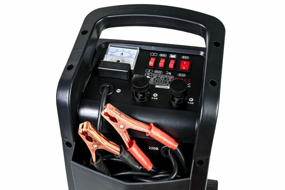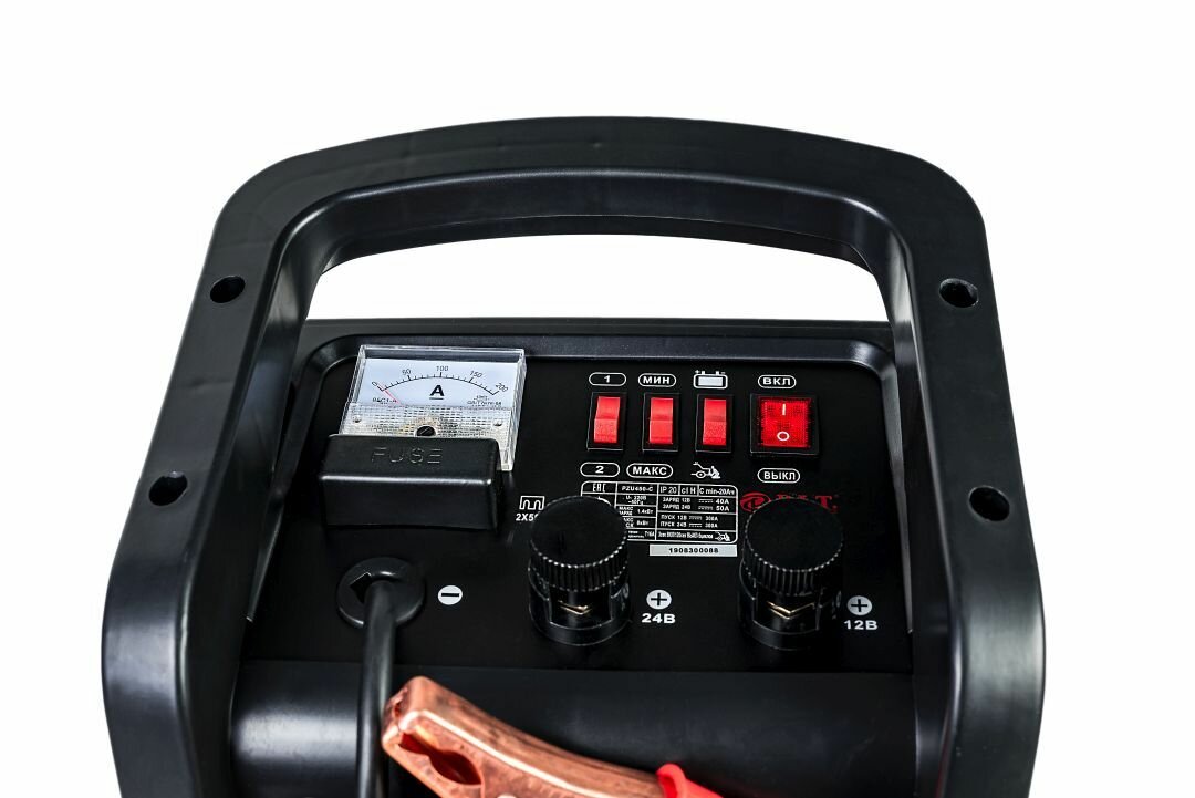 Описание Пуско-зарядное устройство P.I.T. PZU450-C Мастер Пускозарядные устройства P.I.T. PZU450-C Мастер P. I. T. - это известный бренд, который зарекомендовал себя как производитель качественных и надежных инструментов для ремонта и строительства. Одним из продуктов бренда является пуско-зарядное устройство P. I. T. PZU450-C. PZU450-C представляет собой мощное и универсальное устройство для зарядки и запуска свинцово-кислотных аккумуляторов. Оно может использоваться для зарядки аккумуляторов емкостью от 40 до 700 ампер-часов в обычном или быстром режиме. Кроме того, PZU450-C может использоваться для запуска автомобиля в холодное время года. Устройство имеет амперметр, который позволяет визуально контролировать текущий уровень заряда. Конструкция устройства продумана таким образом, чтобы обеспечить комфорт и удобство использования.