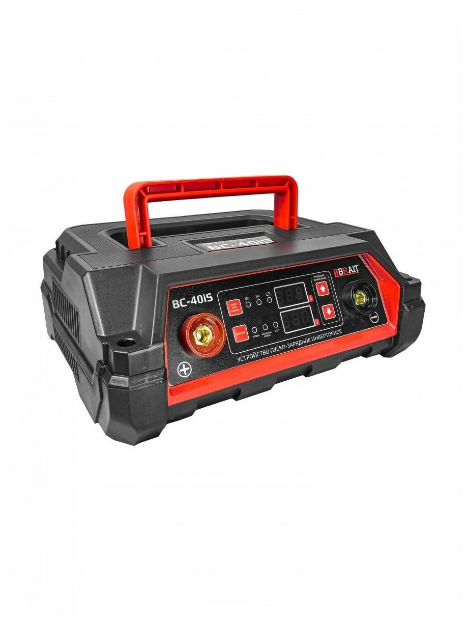 Описание Пуско-зарядное устройство Brait BC-40IS [19.01.019.043] Устройство зарядное инверторное BRAIT BC-40is является безопасным и надежным агрегатом, оснащенным защитой от перегрузки и короткого замыкания. Пуско зарядное устройство пригодится автомобилисту, рыбаку и дальнобойщику в ситуации, когда транспорт не заводится. Наружный блок питания обеспечивает запуск двигателей с разряженными батареями даже во время зимних морозов. По окончании работы зарядное для аккумулятора автоматически отключается. Инвертор автомобильный используется для зарядки свинцово-кислотных АКБ авто, мотоциклов, лодок с мотором, а также для питания батарей грузовиков с дизельными двигателями. Периодическая подзарядка увеличивает продолжительность эксплуатации гелевых аккумуляторов. Пуско зарядное устройство быстро запустит двигатель при полностью разряженном аккумуляторе. Для обновления обычно заряженной батарей достаточно 2 часов зарядки, для полной перезарядки может понадобиться 8-10 часов. Зарядное устройство для автомобильного аккумулятора можно возить с собой в багажнике, благодаря компактным размерам.