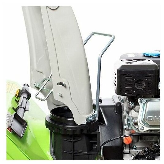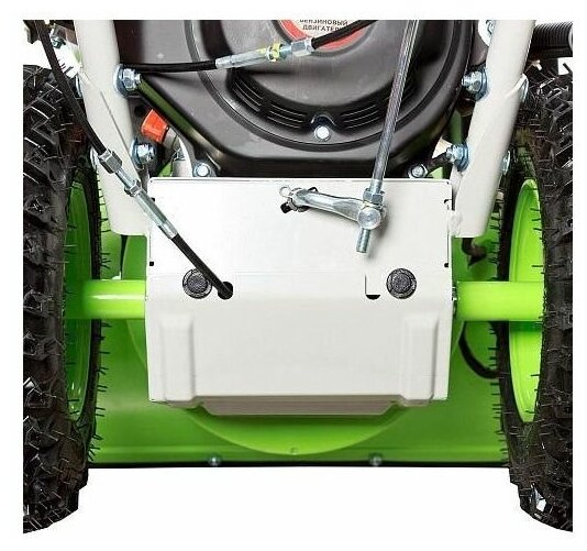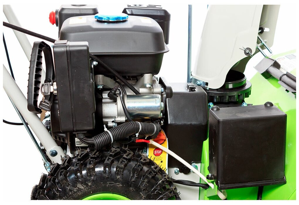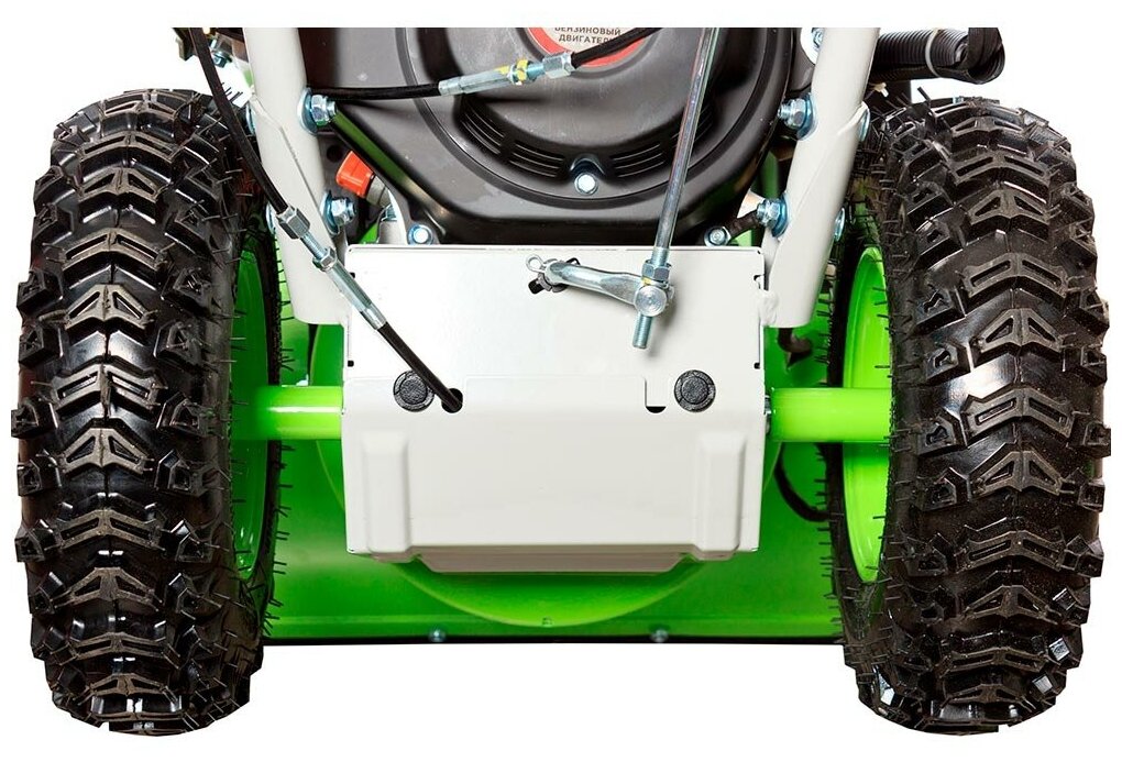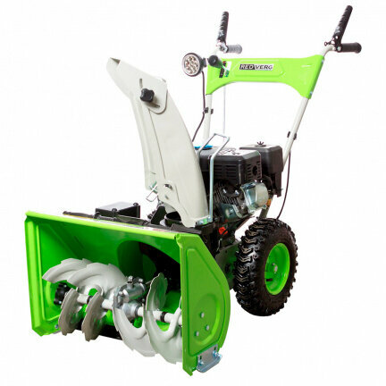 Описание Снегоуборщик RedVerg RD-SB56/7EB Бензиновый снегоуборщик Redverg RD-SB56/7EB оснащен большими колесами диаметром 33 см. Спереди размещен широкий ковш размером 55x43 см. Особенностью модели считается ручная регулировка дальности и направления выброса снега. Желоб выполнен из прочного металла. Доступно четыре скорости движения вперед, переключение между которыми осуществляется при помощи рычага. Устройство оборудовано четырехтактным двигателем мощностью 7 л.с. Уровень шума снегоуборочной машины не превышает 100 дБ. Рекомендуется использовать топливо АИ-92, объем встроенного бака для бензина составляет 3 л. Максимальное число оборотов мотора достигает 3600 в минуту. Преимущества Ручное управление направлением выброса снега с помощью ручки скобы; Система электрозапуска от аккумулятора 12В; Привод с фрикционным диском; Простое и доступное управление: выбор скорости рычагом; Большие и широкие 13-дюймовые колёса; Справится даже со слежавшимся снегом; Ограничительные лыжи - защита ковша от повреждений; Светодиодная фара - работа в любое время суток; Самоходный принцип передвижения - комфортная работа.