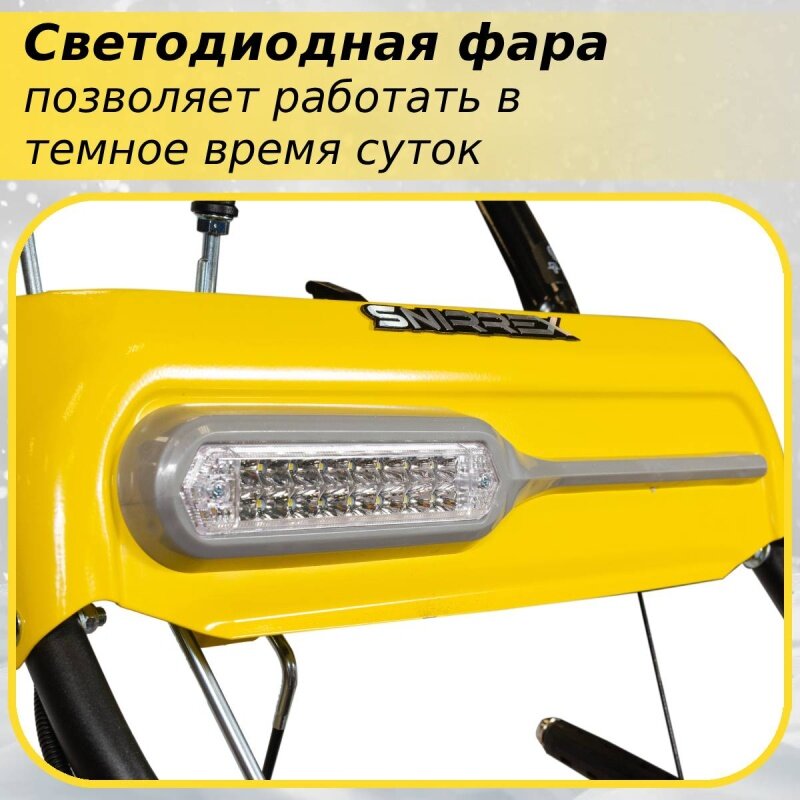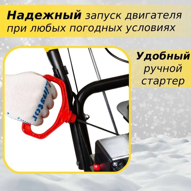 Описание Снегоуборщик Snirrex SLC 6561 F Бензиновый самоходный снегоуборщик SNIRREX SLC 6561 F создан для эффективной очистки снега на средних и больших территориях, особенно в суровых климатических условиях. Оснащен мощным двигателем и удобными функциями для работы в сложных зимних условиях. Ключевые преимущества Мощный двигатель 4-тактный двигатель объемом 196 см³ (6.5 л. с.) с воздушным охлаждением. Устойчив к низким температурам, обладает увеличенным ресурсом и низким уровнем шума и вибраций. Проходимость и маневренность Колеса с глубоким протектором обеспечивают надежное сцепление даже на льду и глубоком снегу. Высокая производительность Широкий ковш (61 см) позволяет обрабатывать большие участки за короткое время. Дальность выброса снега 11 метров. Надежность и защита Агрессивный стальной шнек легко справляется с плотным снегом и наледью. Срезные болты защищают редуктор от повреждений при столкновении с препятствиями. Удобство управления Все рычаги и переключатели расположены под рукой оператора для изменения передач, регулировки направления выброса снега, угла наклона дефлектора и включения фар.