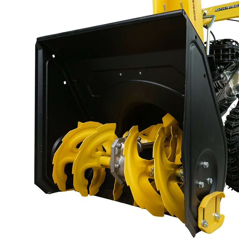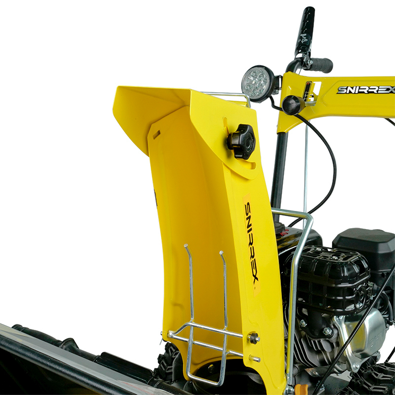 Описание Снегоуборщик Snirrex SLC 6553 FM Снегоуборщик Snirrex SLC 6553 FM - самоходная техника для уборки снега. Машина оснащена 4-х тактным бензиновым двигателем мощностью 6,5 л.с. и объёмом 196 куб.см. Мотор рассчитан на работу при низких температурах до -25 градусов. Запуск производится при помощи ручного стартера. Зимний воздушный фильтр - внутри корпуса отсутствует поролоновый или бумажный элемент. Датчик контроля масла предупредит о необходимости пополнить бак. Топливный насос праймер для подкачки топлива оснащён большой кнопкой для использования в варежках. Особая форма протектора колёс облегчает управление техникой на льду, обеспечивает высокую проходимость и маневренность. Ручное управление поворотом и дефлектором желоба. Максимальная дальность управления выбросом не более 11 м. Для уборки снежного покрова в тёмное время суток снегоуборщик оснащён светодиодной фарой. Все важные органы управления находятся под рукой. Установить необходимый темп движения поможет ручка переключения скоростей. Перед началом работы отрегулируйте положение опорных салазок по обеим сторонам ковша. Настройка производится при помощи ключа. Стальные лопасти шнека усилены рёбрами жесткости, поэтому при попадании крупного льда или камня в рабочую зону не произойдёт деформации лопастей.