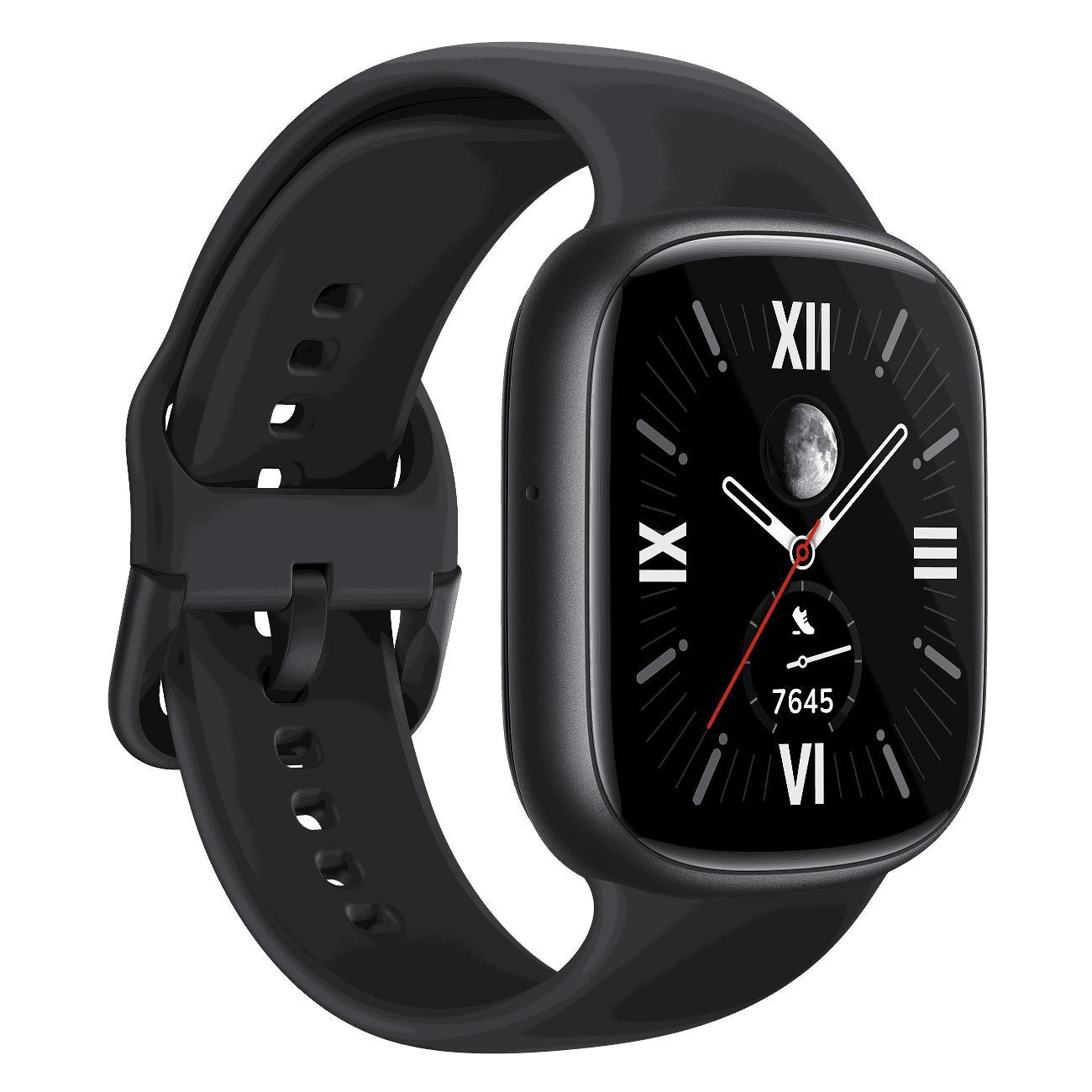 Описание Смарт-часы HONOR Watch 4 Black [TMA-B19] Умные часы HONOR Watch 4 — мощная модель с эффектным дизайном, предназначенная для повседневных задач и спортивных тренировок. Элегантный дизайн Умные часы Watch 4 смотрятся стильно и представительно благодаря большому экрану, квадратной форме корпуса и закругленным углам. Модель унисекс одинаково хорошо подходит мужчинами и женщинам. Большой яркий дисплей AMOLED-дисплей с диагональю 1.75 дюйма отличается высоким разрешением 450x390 пикселей, яркой подсветкой и качественной цветопередачей. Благодаря этому информация на экране хорошо видна даже при солнечном свете. Поддержка звонков Встроенный микрофон и динамик позволяют вести телефонные разговоры, а чтобы ответить на звонок или сбросить вызов, достаточно коснуться сенсорного дисплея. Датчики здоровья и физической активности Умные часы полностью заменяют фитнес-браслет благодаря встроенным датчикам, которые контролируют показатели здоровья не только во время спортивных упражнений, но и в течение всего дня. Датчики измеряют частоту сердечных сокращений, уровень кислорода в крови, контролируют уровень стресса и качество сна. С их помощью можно отслеживать количество пройденных шагов, считать сожженные калории, мониторить женский цикл. Программы спортивных тренировок Умные часы Watch 4 поддерживают 97 режимов для спортивных занятий, включая индивидуальные программы и профессиональные тренировки в спортзале и на открытом воздухе. Вы можете выбрать предпочитаемый вид спорта, отслеживать статистику и получать рекомендации.