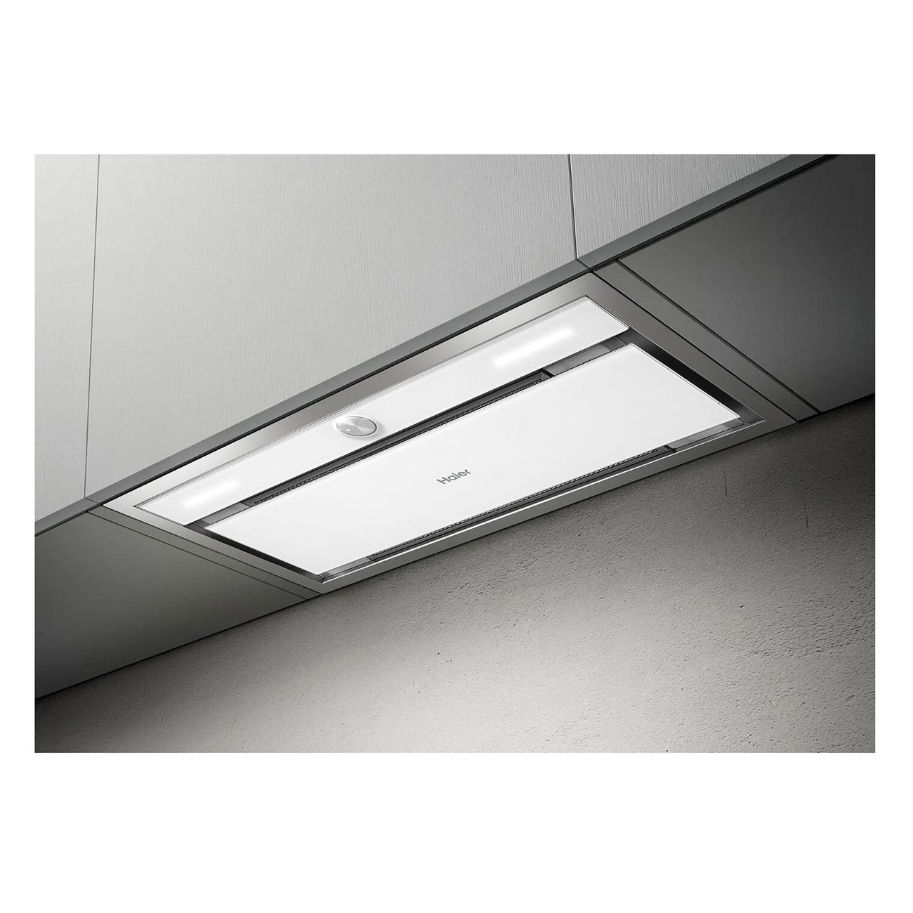 Описание Вытяжка Haier HVX-BI664GW Современный дизайн Благодаря тонкой рамке из нержавеющей стали и стеклянной панели, закрывающей жировой фильтр, вытяжка максимально незаметно впишется в современный интерьер. Встраивание этой вытяжки производится практически вровень с мебельным фасадом верхней кухонной полки. Центральный утапливаемый регулятор управления Утапливаемый регулятор Push-Pull обеспечивает удобство и простоту управления полностью встроенной вытяжкой. Регулятор можно выдвинуть нажатием для установки режима работы, а в выключенном состоянии с задвинутым регулятором вытяжка практически не видна в кухонной мебели. Светодиодное освещение Светодиоды работают гораздо дольше обычных ламп накаливания, они ярче светят и тратят меньше электроэнергии. Поэтому мы используем их в передовых моделях вытяжек Haier. Режим рециркуляции Даже если нет возможности установить воздуховод, данная вытяжка поможет избавиться от нежелательных запахов благодаря режиму рециркуляции. Для этого нужно установить дополнительный угольный фильтр, который достаточно будет менять несколько раз в год. Вытяжка Haier HVX-BI664GW предназначена для полного встраивания в кухонный шкаф. Рамка внешней части вытяжки изготовлена из нержавеющей стали и практически не выступает из кухонной панели, а жировой фильтр закрыт стеклянной панелью, вокруг которой происходит всасывание воздуха. Такую панель легко мыть, а периметрическое всасывание считается более эффективным. Для удобства управления предусмотрен утапливаемый регулятор выбора режима работы. Модель имеет хорошие характеристики производительности, до 560 м³ воздуха в час, и может эффективно удалять загрязненный воздух, как в режиме воздухоотвода, так и в режиме рециркуляции при условии установки дополнительного угольного фильтра. Яркое светодиодное освещение обеспечит комфорт и удобство при приготовлении блюд на плите. Отличительной особенностью этой модели является возможность выбрать цветовую температуру света, 2700, 4500 или 6500K, от теплого до холодного диапазона.