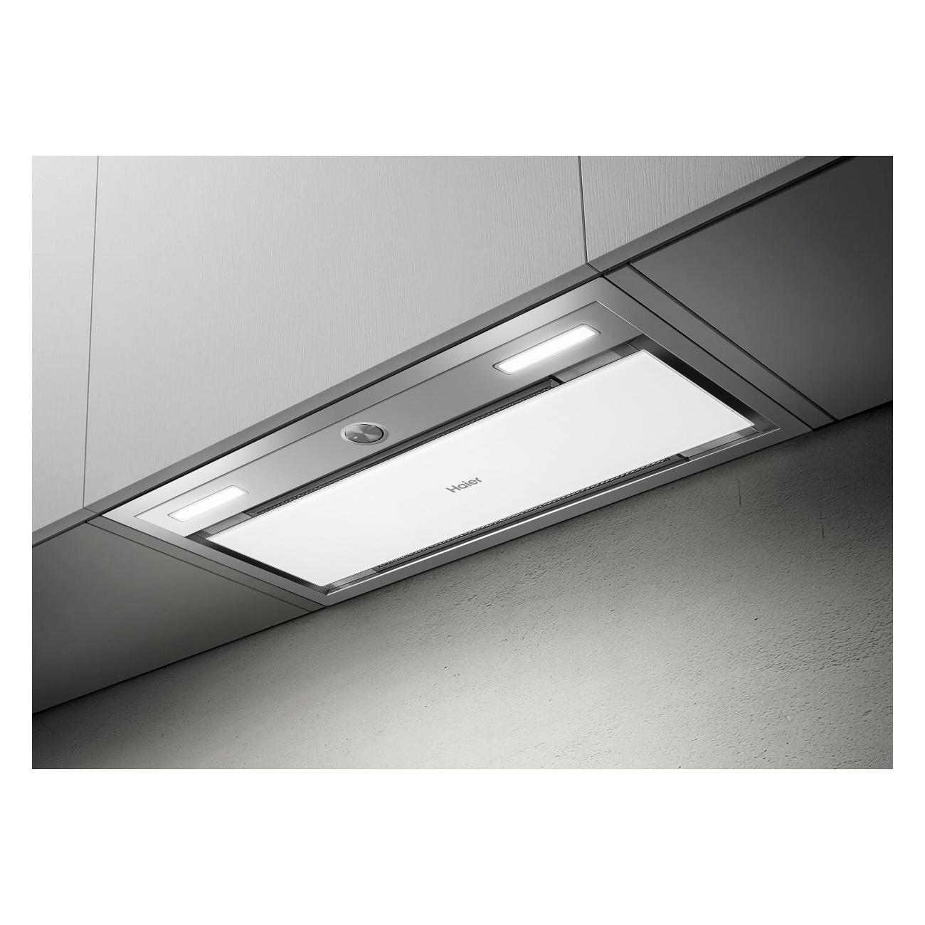 Описание Вытяжка Haier HVX-BI664GWX Современный дизайн Благодаря тонкой рамке из нержавеющей стали и стеклянной панели, закрывающей жировой фильтр, вытяжка максимально незаметно впишется в современный интерьер. Встраивание этой вытяжки производится практически вровень с мебельным фасадом верхней кухонной полки. Утапливаемый регулятор управления Для полностью встраиваемой вытяжки утапливаемый регулятор включения и выбора мощности работы обеспечивает высокий уровень удобства и простоты управления. Центральный утапливаемый регулятор управления Утапливаемый регулятор Push-Pull обеспечивает удобство и простоту управления полностью встроенной вытяжкой. Регулятор можно выдвинуть нажатием для установки режима работы, а в выключенном состоянии с задвинутым регулятором вытяжка практически не видна в кухонной мебели. Светодиодное освещение Светодиоды работают гораздо дольше обычных ламп накаливания, они ярче светят и тратят меньше электроэнергии. Поэтому мы используем их в передовых моделях вытяжек Haier. Режим рециркуляции Даже если нет возможности установить воздуховод, данная вытяжка поможет избавиться от нежелательных запахов благодаря режиму рециркуляции. Для этого нужно установить дополнительный угольный фильтр, который достаточно будет менять несколько раз в год. Вытяжка Haier HVX-BI664GWX предназначена для полного встраивания в кухонный шкаф. Рамка внешней части вытяжки изготовлена из нержавеющей стали и практически не выступает из кухонной панели, а жировой фильтр закрыт стеклянной панелью, вокруг которой происходит всасывание воздуха. Такую панель легко мыть, а периметрическое всасывание считается более эффективным. Для удобства управления предусмотрен утапливаемый регулятор выбора режима работы. Модель имеет хорошие характеристики производительности, до 560 м³ воздуха в час, и может эффективно удалять загрязненный воздух, как в режиме воздухоотвода, так и в режиме рециркуляции при условии установки дополнительного угольного фильтра. Яркое светодиодное освещение обеспечит комфорт и удобство при приготовлении блюд на плите.