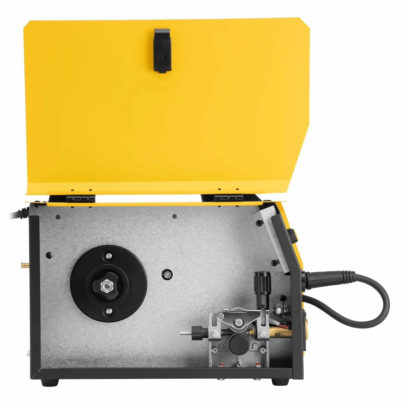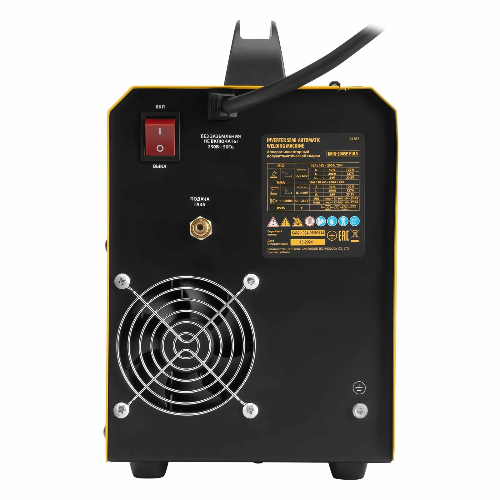 Описание Сварочный аппарат Denzel IMIG-200SP Pulse [94362] Инверторный аппарат полуавтоматической сварки Denzel IMIG-200SP Pulse совместим с катушками массой до 5 кг, работает со сварочным током до 200 A, продолжительность включения составляет 60%. Предназначен для сварки в среде защитных газов (MIG/MAG), сварки порошковой проволокой (FCAW), покрытым электродом (MMA), а также аргонодуговой сварки неплавящимся электродом (Lift TIG). Горелка TIG не входит в комплект поставки. При включенном режиме MIG PULSE доступна сварка пульсирующим постоянным током деталей или изделий из алюминиево-магниевого, а также алюминиево-кремниевого сплава. Аппарат, разработанный с использованием передовой технологии IGBT, обеспечивает высокую эффективность работы при низком энергопотреблении. Стабильно работает даже при колебаниях напряжения в сети электропитания. Для более комфортного сварочного процесса предусмотрено синергетическое управление: аппарат автоматически задает напряжение, соответствующее предустановленному сварочному току и выбранному режиму сварки. Преимущества 2 режима работы горелки — 2T для формирования коротких швов и работы в труднодоступных местах, 4T — для выполнения длинных швов. Ручная корректировка напряжения — в режимах MIG и MIG PULSE заданное значение можно изменить в диапазоне 10 В. Работа с пониженным напряжением холостого хода — режим VRD для сварки MMA обеспечивает безопасность пользователя во время перерыва или при замене электрода. Широкий выбор расходников — аппарат совместим с катушками со сварочной проволокой массой от 1 до 5 кг. Дополнительные возможности — в режимах MIG и MIG PULSE доступна ручная корректировка скорости подачи проволоки и выбор значения индуктивности. Быстрое и качественное соединение листовых конструкций — режим SPOT позволяет проводить сварку с применением точечного воздействия тока определенной силы и заданной продолжительности времени. Высокое качество сварки — можно выбрать оптимальные параметры скорости сварки, вылета проволоки и потока защитного газа. Простое подключение горелки MIG — производитель предусмотрел универсальный евроразъем. Система охлаждения Smart Fan — в режимах MIG и MIG PULSE «умный» вентилятор запускается автоматически при срабатывании датчика перегрева. Защита от перегрева, перегрузки и перенапряжения — при превышении допустимой температуры, напряжения питания и выходного тока аппарат автоматически прекращает работу. Сохранение настроек — предусмотрено 9 слотов памяти для выбранных параметров сварки (для режимов MIG и MIG PULSE). Удобный контроль рабочих параметров — на цифровом дисплее отображается напряжение, скорость подачи проволоки и заданное значение индуктивности (MIG и MIG PULSE), а также установленная величина сварочного тока (TIG и MMA). Проверка готовности к работе — предусмотрены функции протяжки проволоки без подачи газа и продувки газа без подачи проволоки. Возможность смены полярности — можно выбрать обратную или прямую полярность подключения сварочных кабелей в зависимости от типа электрода и характера выполняемых работ. Свободное перемещение по рабочей зоне — длина сварочных проводов составляет 2 м, рукава с горелкой MIG — 3 м. Гарантия 3 года — надежность техники подтверждена производителем.