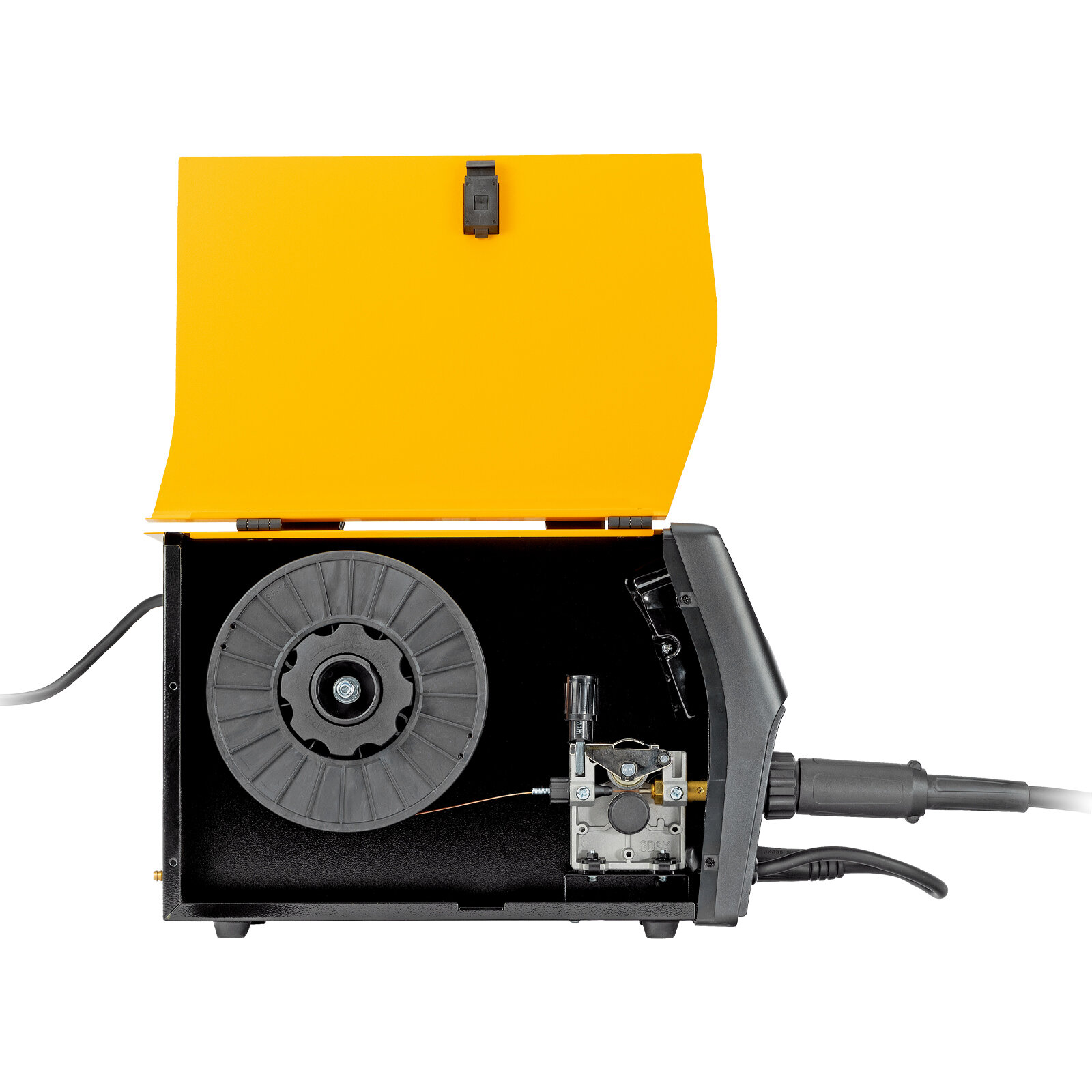 Описание Сварочный аппарат Denzel IMIG-185SDR [94363] Инверторный аппарат полуавтоматической сварки Denzel IMIG-185SDR 94363 работает с максимальным сварочным током 180 A и совместим с катушками массой от 1 до 5 кг, продолжительность включения составляет 60%. Аппарат разработан с использованием передовой инверторной технологии IGBT, что обеспечивает стабильный сварочный ток на выходе и высокий КПД при низком энергопотреблении. Возможна работа при нестабильном напряжении в сети. Синергетическое управление упрощает подбор параметров сварки в зависимости от конкретной задачи: аппарат предлагает оптимальные значения напряжения, скорости подачи проволоки и т.д. С помощью аппарата можно проводить ручную сварку покрытым электродом (MMA), сварку проволокой в газозащитной среде (MIG/MAG) или порошковой (флюсовой) проволокой диаметром 0,8-1 мм без подачи газа (FCAW), а также аргонодуговую сварку неплавящимся электродом (LIFT TIG). Горелка работает в 2 режимах: 2T, т.е. формирование коротких швов и работа в труднодоступных местах и 4T — выполнение длинных и кольцевых швов. Преимущества Эффективная работа в разных положениях и с заготовками различной толщины — в режимах MIG/Flux/SPOOL GUN предусмотрена возможность регулировки индуктивности и длины дуги. Высокое качество выполняемых работ — можно выбрать оптимальные параметры скорости сварки, вылета проволоки и потока защитного газа. Вспомогательные функции в режиме MMA-сварки — Hot Start упрощает розжиг дуги, Arc Force обеспечивает стабильную работу и высокое качество шва, Anti Stick позволяет легко отделить электрод от поверхности металла, не повредив обмазку. Безопасность — в режиме MMA можно включить функцию VRD для работы с пониженным напряжением холостого хода, что уменьшает риск получения электротравмы, особенно в условиях повышенной влажности. Возможность смены полярности — в режиме сварки MMA можно выбрать прямую или обратную полярность подключения сварочных кабелей в зависимости от типа электрода и толщины свариваемых деталей. Защита от перегрева, перенапряжения и перегрузки — в случае превышения допустимых значений напряжения, выходного тока и температуры аппарат автоматически отключается. Система охлаждения Smart Fan — вентилятор запускается автоматически при превышении предельного значения внутренней температуры аппарата. Удобное управление — рабочие параметры регулируются при помощи поворотного регулятора, выбранные значения отображаются на цифровом дисплее. Простое подключение горелки MIG — производитель предусмотрел универсальный евроразъем. Работа на удалении от аппарата и в труднодоступных местах — предусмотрена возможность использования горелки со встроенной катушкой сварочной проволоки (Spool gun). Продуманная комплектация — аппарат поставляется с горелкой MIG, газовым шлангом и сварочными проводами (с электрододержателем и зажимом «земля»). Возможность расширения рабочей зоны — длина сварочных кабелей составляет 2 м. Удобное перемещение — в верхней части корпуса предусмотрена широкая рукоятка. Гарантия 3 года — надежность аппарата подтверждена производителем.