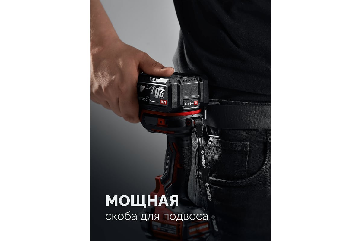 Импульсное приложение крутящего момента позволяет заворачивать крепеж большого диаметра и отворачивать приржавевшие метизы Режим откручивания с автоматической остановкой после срыва крепежа позволяет не терять крепежные элементы Электронный тормоз двигателя для исключения выбега при остановке Подсветка рабочего места способствует дополнительному удобству при работе в условиях недостаточного освещения Скоба для крепления на поясе, устанавливаемая