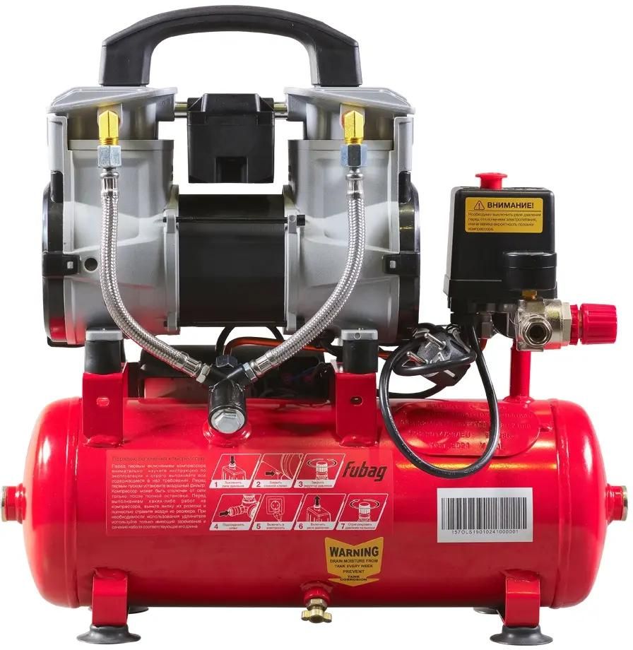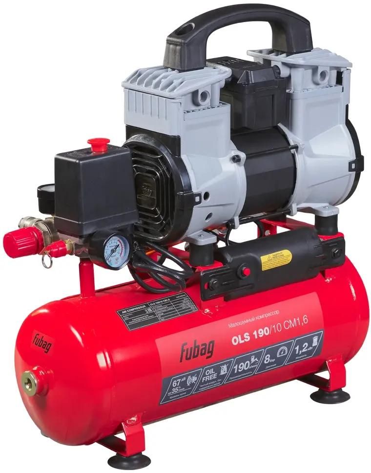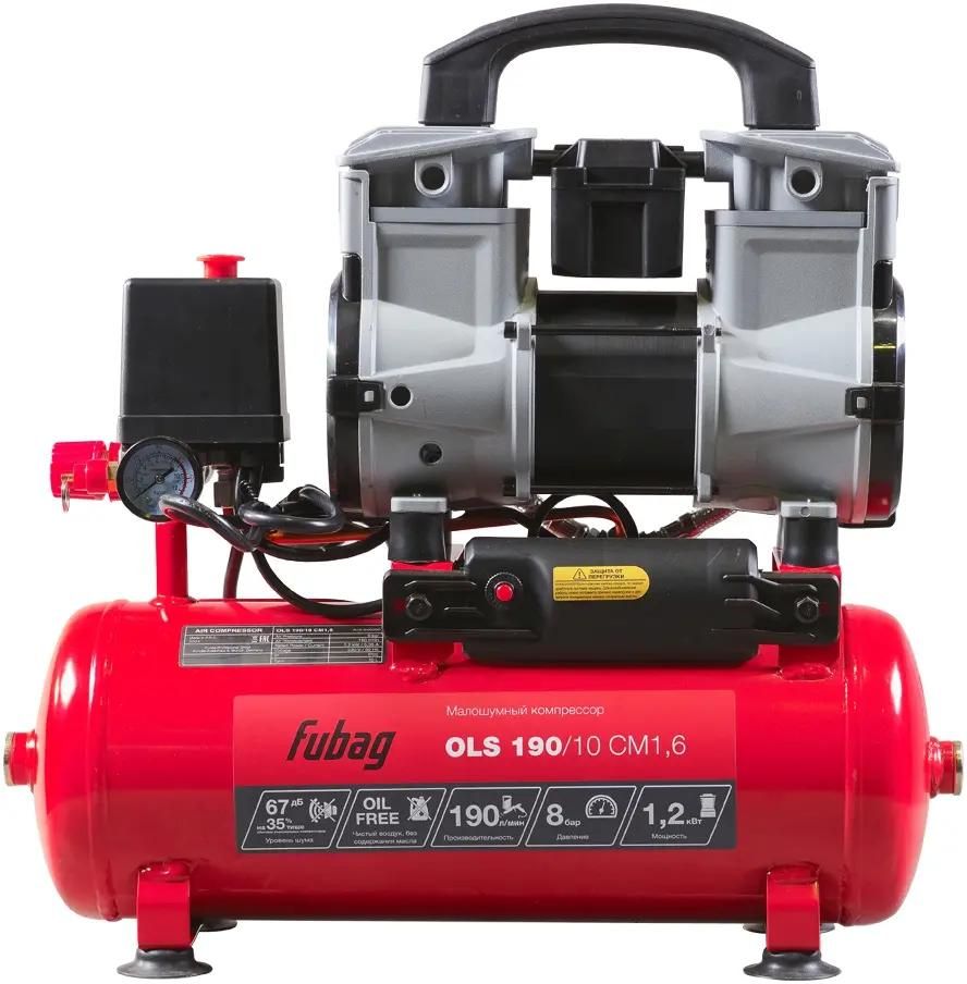 Описание Компрессор Fubag OLS190/10 CM1.6 [646066] Компрессоры серии OLS - безмасляные малошумные машины, предназначенные для снабжения пневмоинструмента чистым, без примесей масла, воздухом. Идеальны для использования при проведении окрасочных работ, в автосервисах, небольших мастерских. Специальная конструкция воздушной головки позволяет более чем на 30% снизить уровень шума по сравнению с коаксиальными поршневыми аналогами, обеспечивает низкую вибрацию и высокий рабочий ресурс. Компрессор работает в режиме S1 - непрерывно, без требований цикличности нагрузки. Отсутствие масла позволяет легко транспортировать компрессор в любом пространственном положении без риска протечек. Прессостат для поддержания заданного давления в ресивере и обеспечения повторного запуска. Сбалансированное расположение блока цилиндров на валу электродвигателя: повышает производительность компрессора; снижает рабочую температуру воздушной головки; уменьшает уровень шума более чем на 30% по сравнению с поршневыми компрессорами прямого привода классической компоновки.
