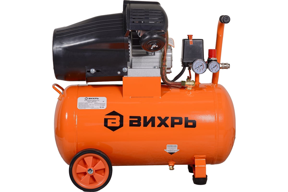 Описание Компрессор Вихрь КМП-380/50 [74/3/61] Компрессор воздушный КМП-380/50 Вихрь представляет собой надёжный источник сжатого воздуха для широкого спектра механизированных работ. Устройство предназначено для эффективной подачи воздушного потока в пневматическое оборудование, будь то инструменты для ремонта автомобилей, покрасочные пистолеты или монтажные аппараты. Оснащённый электрическим мотором мощностью 2200 Вт, компрессор способен развивать максимальную производительность до 380 л/мин, обеспечивая бесперебойную подачу давления для большинства видов пневмооборудования. Объём встроенного ресивера составляет 50 л, что позволяет поддерживать постоянный запас сжатого воздуха и минимизировать перерывы в работе. Конструкция поршневого типа, состоящая из двух цилиндров, гарантирует равномерную подачу воздуха и снижает уровень шума во время эксплуатации. Номинальное рабочее давление достигает 8 бар, что соответствует требованиям большинства профессиональных инструментов и оборудования. Конструкция с прямой передачей движения способствует увеличению срока службы устройства и упрощению технического обслуживания.