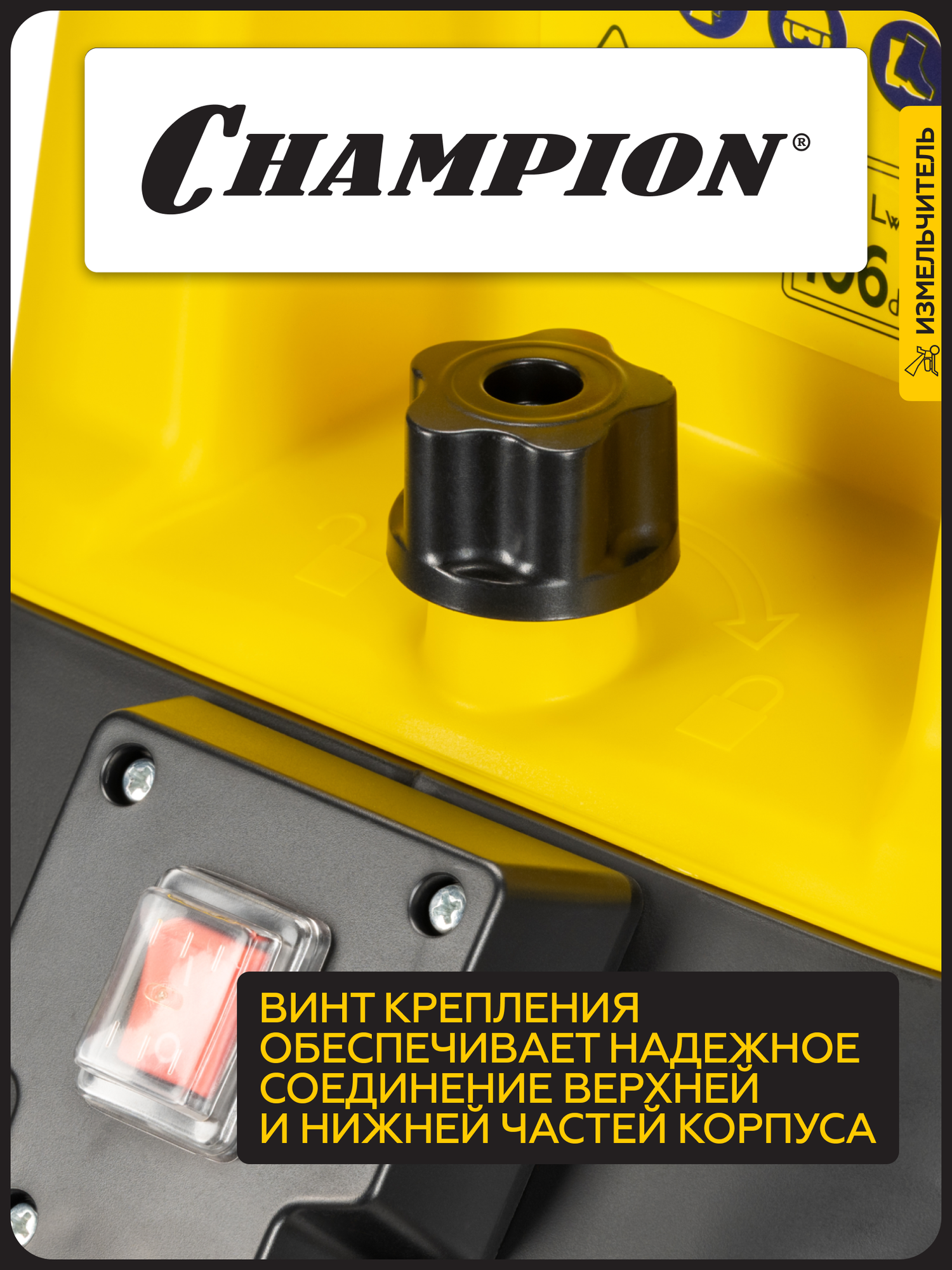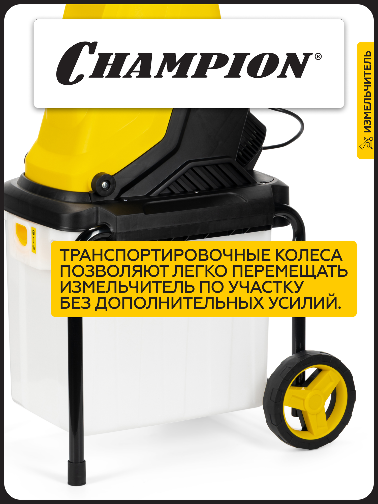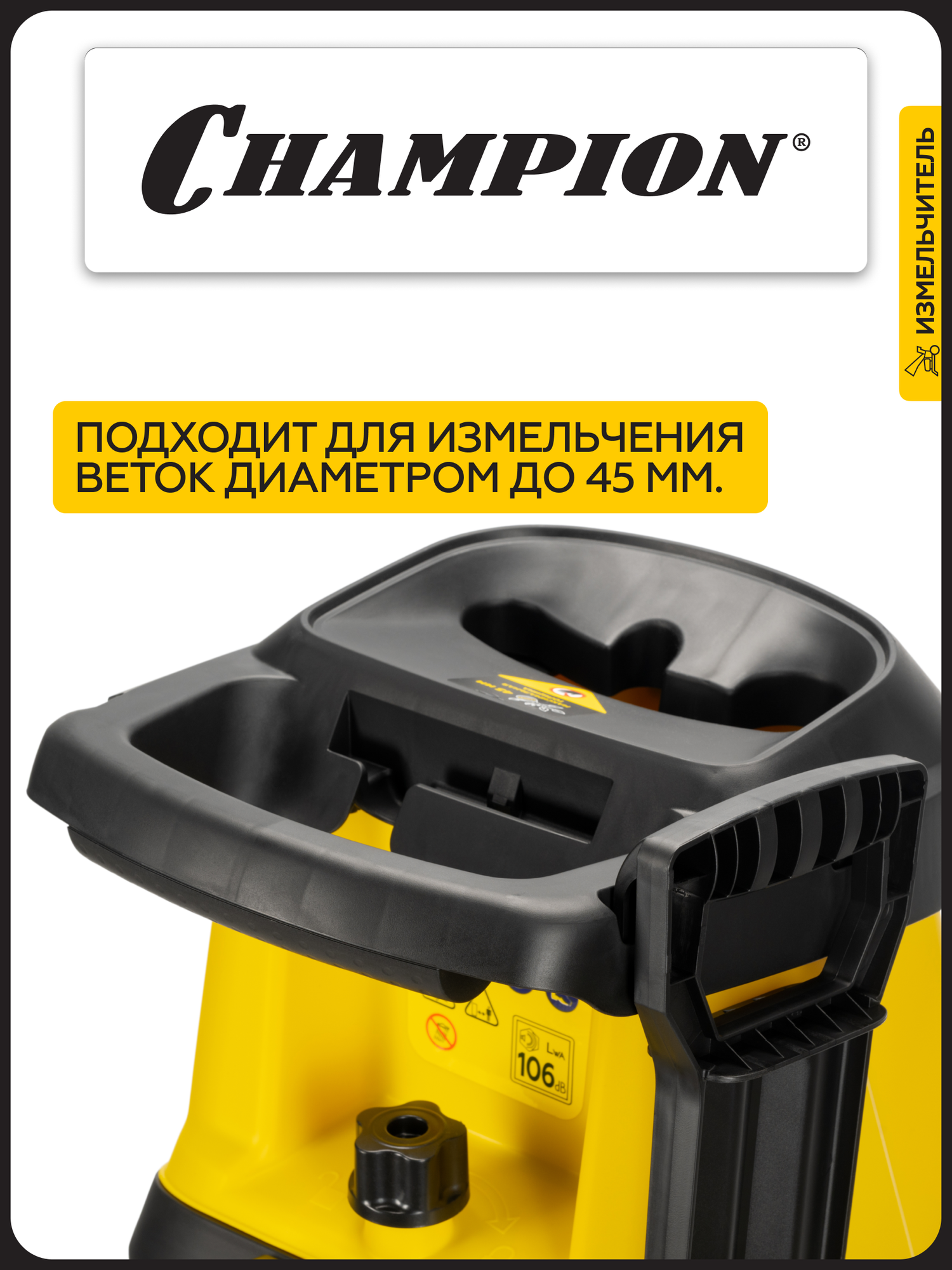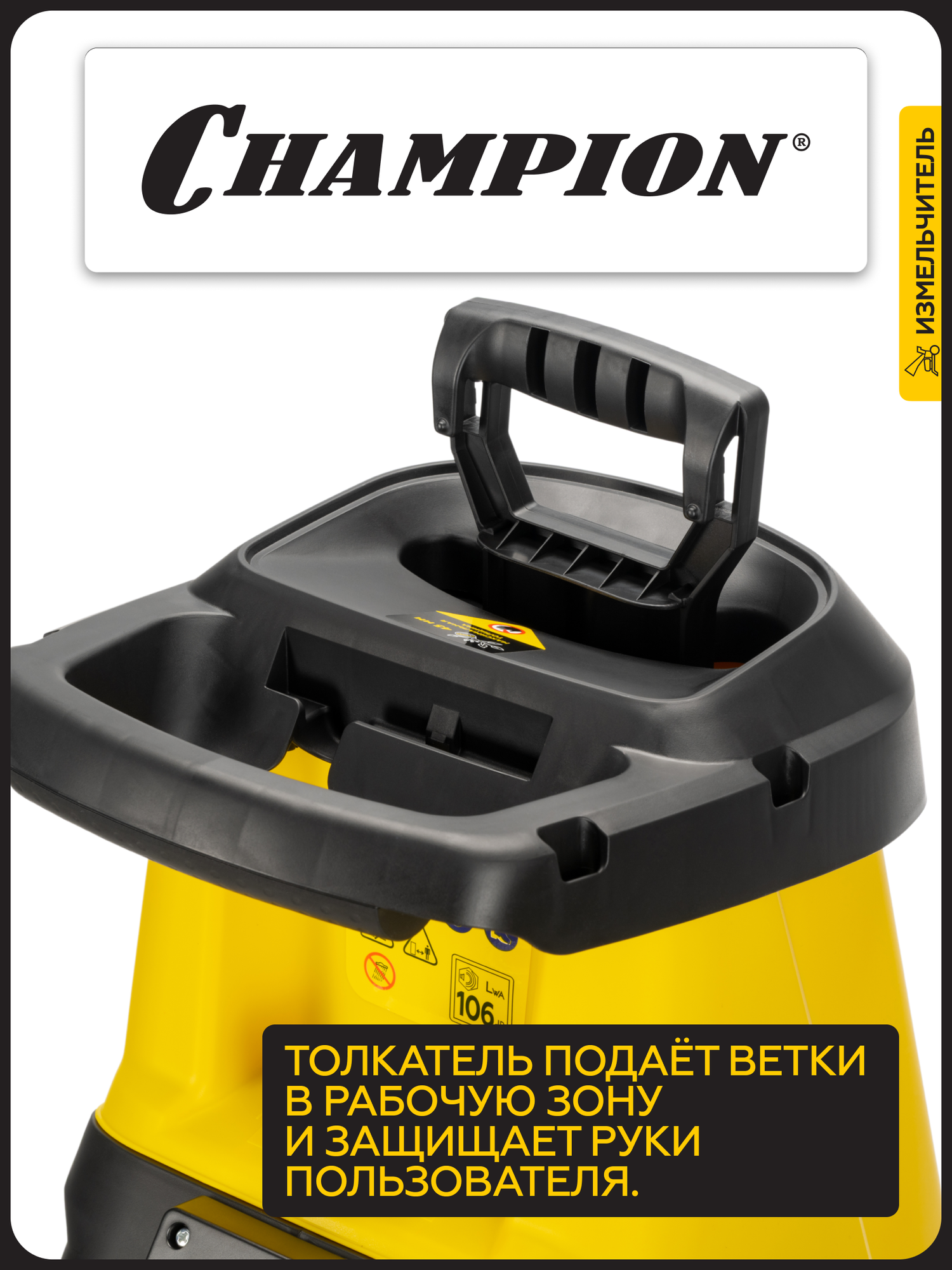 Описание Измельчитель садовый Champion SH281 Измельчитель электрический Champion SH281 – мощный и надежный помощник для ухода за садом. Champion SH281 – это электрический измельчитель, созданный для быстрой и эффективной переработки веток, кустарников и садового мусора. С его помощью вы легко избавитесь от растительных отходов, превратив их в мелкую щепу для компоста или мульчирования. Особенности: Мощность и производительность – двигатель 2800 Вт справляется с ветками до 45 мм в диаметре, обеспечивая высокую скорость работы; Низкий уровень шума – работает значительно тише бензиновых аналогов; Мобильность – компактные размеры, колеса и небольшой вес позволяют легко перемещать измельчитель по участку; Долговечность – стальные ножи с двойной заточкой гарантируют долгий срок службы и качественное измельчение; Безопасность – защита от перегрузок и случайного включения, а также прочный толкатель предотвращают травмы; Простота использования – удобная загрузочная воронка, вместительный контейнер для сбора щепы и интуитивное управление делают процесс измельчения комфортным.