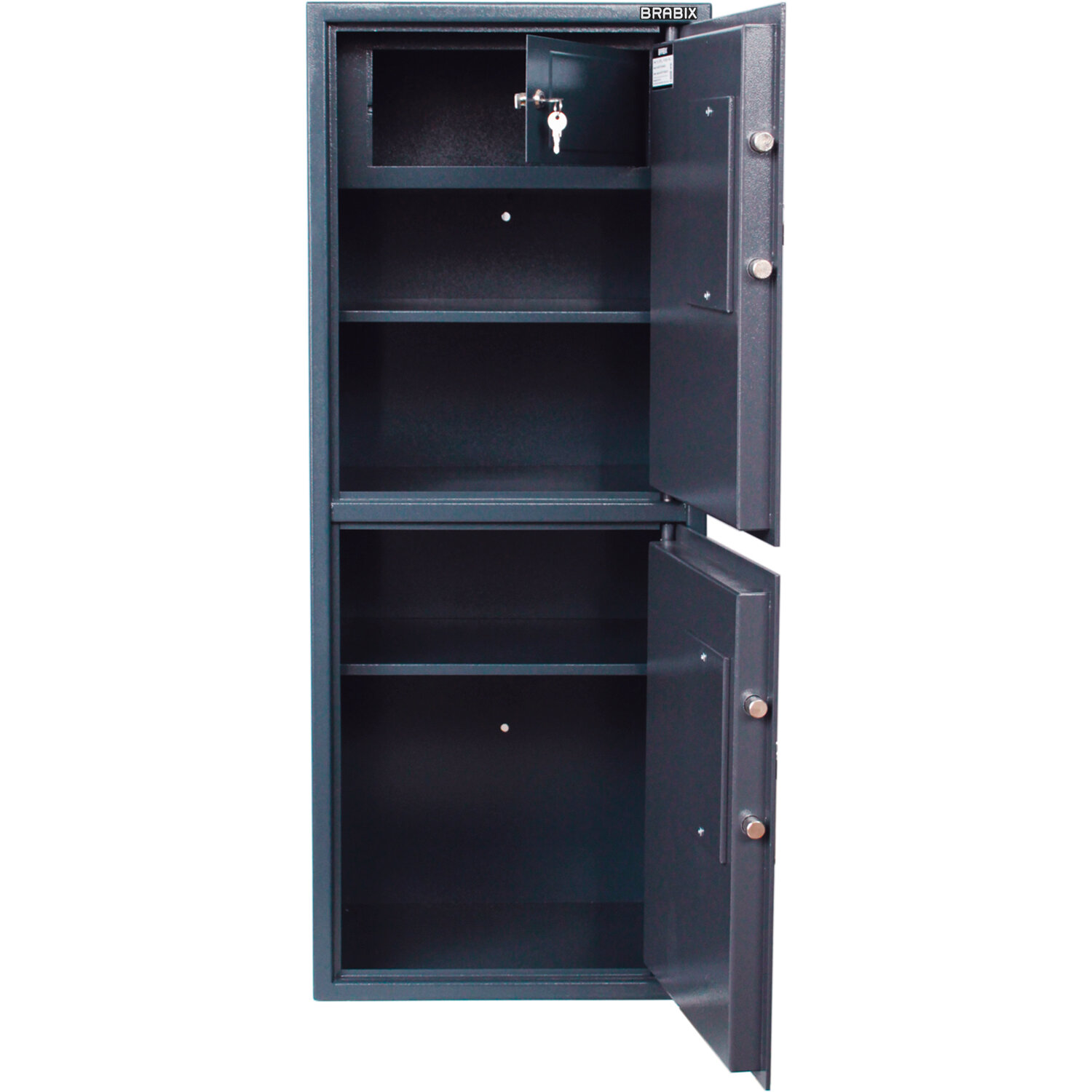 Описание Сейф BRABIX КМ-1200Т/2 1200х475х400 мм ключевой [291170] Cейфы BRABIX серии «KM» предназначены для надежного хранения документов и ценностей дома и в офисе. Устойчивость к взлому по ГОСТ Р 55148-2012: класс S1. Сейф изготовлен из стали. Лицевая панель толщиной 5 мм, корпус - 2,5 мм, коробка двери - 1,4 мм, полка - 0,8 мм. Комплектуется ключевым замком сейфового типа класса"А" «BORDER» (Россия). В комплекте 2 ключа. Изделие имеет 2 активных ригеля в сторону диаметром 20 мм. Оборудован отсеком ограниченного доступа (трейзер), запираемым на замок «почтового» типа. Комплектуется 2 съемными полками. Окраска - стойкое полимерное порошковое покрытие, защищающее от царапин и ржавчины. Предусмотрена возможность анкерного крепления к стене (диаметр отверстия - 7 мм). Анкерные болты в комплекте. Петли сейфа – внутренние. Сейф представляет собой цельносварную металлическую конструкцию прямоугольной формы, соединение элементов которой выполнено методом сварки сплошным швом по контуру прилегания элементов.