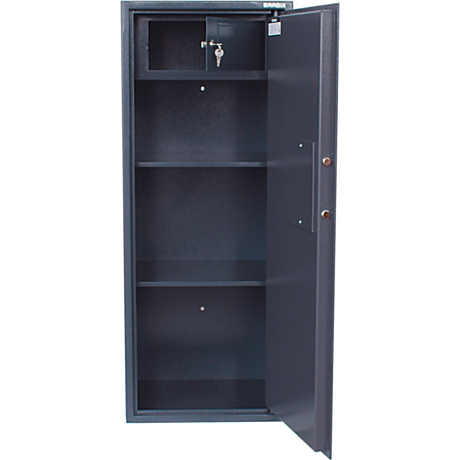 Описание Сейф BRABIX КМ-1200Т 1200х475х400 мм ключевой [291169] Cейфы BRABIX серии «KM» предназначены для надежного хранения документов и ценностей дома и в офисе. Устойчивость к взлому по ГОСТ Р 55148-2012: класс S1. Сейф изготовлен из стали. Лицевая панель толщиной 5 мм, корпус - 2,5 мм, коробка двери - 1,4 мм, полка - 0,8 мм. Комплектуется ключевым замком сейфового типа класса"А" «BORDER» (Россия). В комплекте 2 ключа. Изделие имеет 2 активных ригеля в сторону диаметром 20 мм. Оборудован отсеком ограниченного доступа (трейзер), запираемым на замок «почтового» типа. Комплектуется 2 съемными полками. Окраска - стойкое полимерное порошковое покрытие, защищающее от царапин и ржавчины. Предусмотрена возможность анкерного крепления к стене (диаметр отверстия 7 мм). Анкерные болты в комплекте. Петли сейфа – внутренние. Сейф представляет собой цельносварную металлическую конструкцию прямоугольной формы, соединение элементов которой выполнено методом сварки сплошным швом по контуру прилегания элементов.
