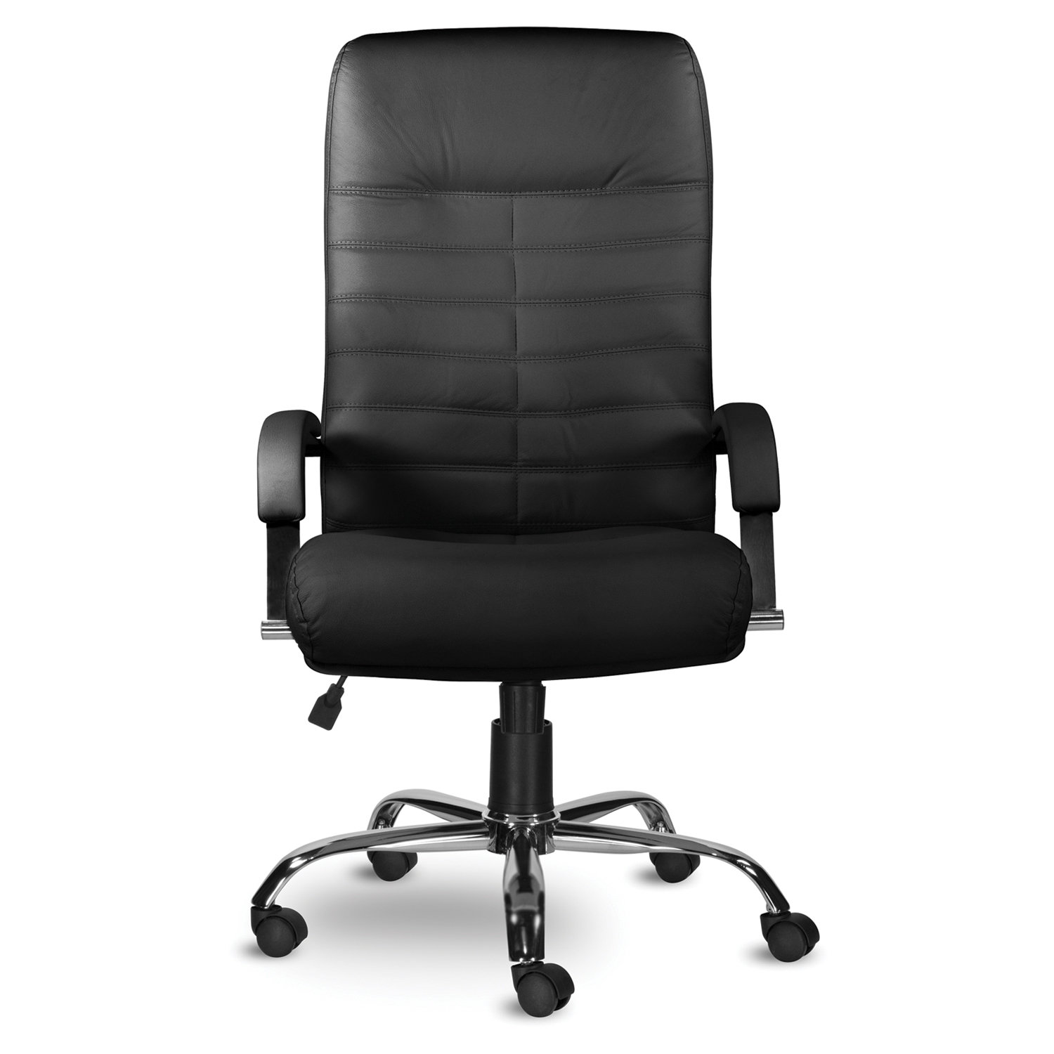 Описание Кресло руководителя Фест Орион черный Кресло руководителя современного дизайна, выполненное из натуральной высококачественной кожи класса «Люкc», с хромированными элементами конструкции. Модель оснащена механизмом качания. Офисное кресло для руководителя «Орион» из кожи с элементами хрома – это респектабельность и изысканный деловой стиль менеджеров среднего и высшего звена. Кресло не только подчеркнет статус человека, но и, благодаря надежной конструкции и высококачественным материалам, прослужит не один десяток лет, сохраняя первоначальный внешний вид. Целостный металлический корпус предмета мебели обеспечивает уверенность посадки и анатомическое удобство – изгиб спинки защищает от усталости поясницу и шею. Хромированные детали придают креслу привлекательную контрастность в сочетании с глубоким черным цветом обивки. Кресло с алюминиевым пятилучием выдерживает вес – до 120 килограммов. «Орион» оснащен механизмом регулировки положения «топ-ган». С его помощью человек может настроить точку фиксации при откидывании спинки, амплитуду качания. Кресло регулируется под рост сидящего. Обивка выполнена из натуральной кожи «Люкс» на спинке и сиденье. Материал приятный к телу, в холодное время не дубеет, а в жаркий период сидеть в кресле будет комфортно. Для экономии натуральных материалов на других поверхностях обивка выполнена из экокожи. Хромированные подлокотники оснащены накладками, на которые удобно опираться. Дизайн предмета мебели прогрессивный и сдержанный. Кресло подойдет и мужчине, и женщине. Им можно оснастить домашний кабинет, подставить к компьютерному столу. Школьнику также подойдет «Орион», настроить кресло можно под рост и вес подростка. Есть возможность удобно откинуть спинку и отдохнуть в перерыве между выполнением задач. В хорошем кресле нельзя устать, отсидеть часть тела, занеметь. Компьютерное кресло «Орион» из натуральной кожи российского производителя – это качественное и выгодное приобретение для кабинета руководителя или специалиста, домашнего рабочего места.